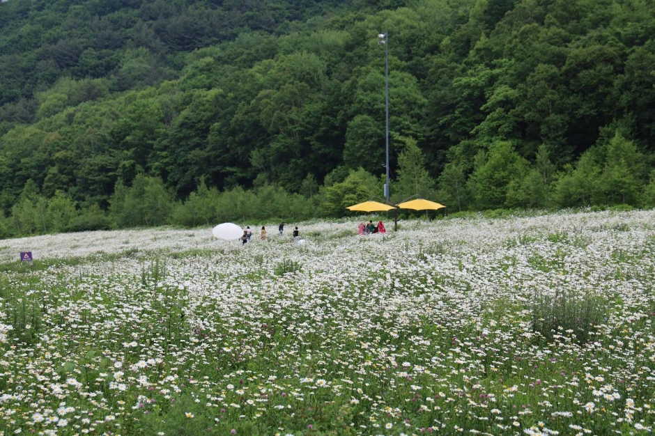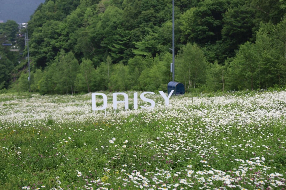 같은 해 6월 19일에 정선 하이원 무릉도원길을 찾았다. 샤스타데이지 군락지를 또 찾아간 것이다. 콘도가 가까워서인지 포토존이 많이 있었다.