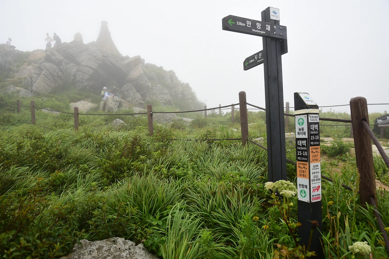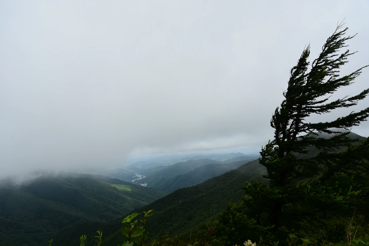 드디어 구름 속을 들어갈 차례다. 야생화와 인사하는 숲길에서는 전혀 상관없지만 정상의 탁 트인 곳에 오르면 파란 하늘이 정말 아쉽다.