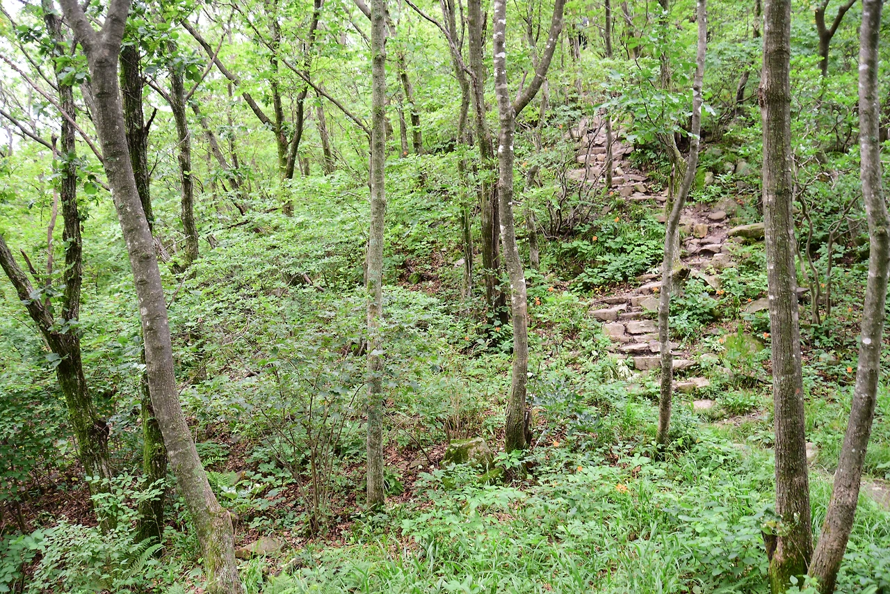 계단이 계속되는 중. 사이사이 나무도막으로 된 계단이 발의 피로를 줄여준다. 몇 년 전 공사하는 모습을 보고 감사하다고 인사를 했는데, 오를 때마다 그 고마움을 늘 느끼게 된다.