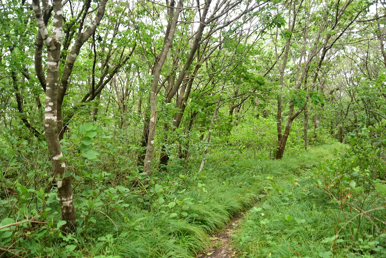 초록 숲길은 언제나 좋다. 더운 여름철에도 함백산 숲길은 시원하다. 적절히 바람까지 불어주니 여름 산행이라도 전혀 힘들지가 않다. 함백산 등산로 구간에서 남편이 특히 좋아하는 곳이다.