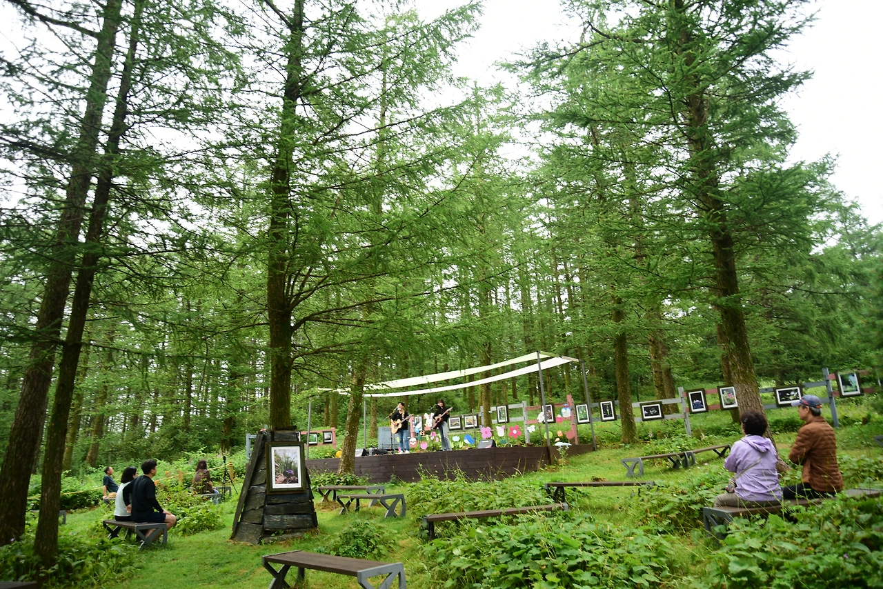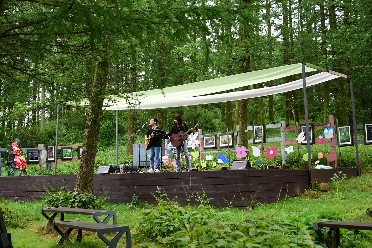 축제 기간이라 버스킹 공연을 볼 수 있었다. 숲 속에서 생음악을 듣는 일이 쉽지 않은 경험이라 주변에 한참을 머물면서 감상을 했다. 원래 버스킹 공연 관람이 목적인양 자리 잡고 앉아서 구경하는 사람들이 제법 보였다.