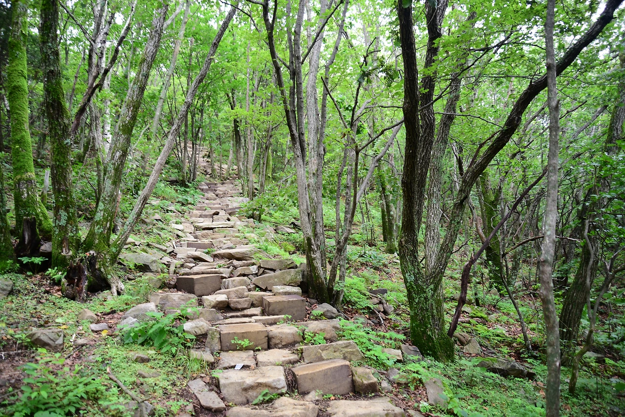 부담이 덜 되는 산행코스라고 했으나, 만만한 산은 아니다. 오르막 돌계단이 꽤 길게 이어져있다.