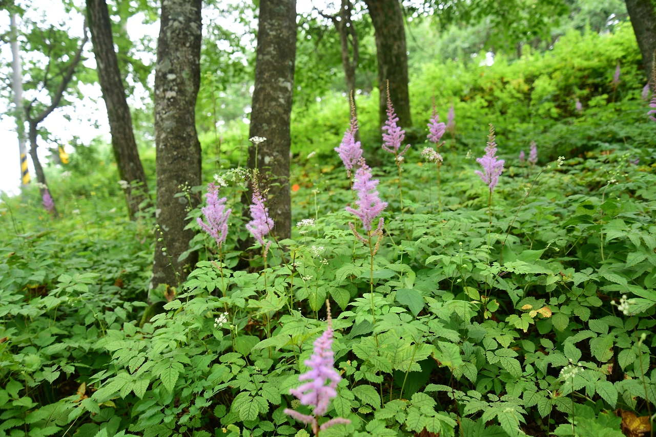 노루오줌은 원래 꽃대가 빳빳하게 힘이 있는데 살짝 숙이고 있는 이 꽃은 숙은노루오줌이라고 한다. 드물게 흰색도 나타난다고 했는데, 함백산에서 제법 볼 수 있었다.