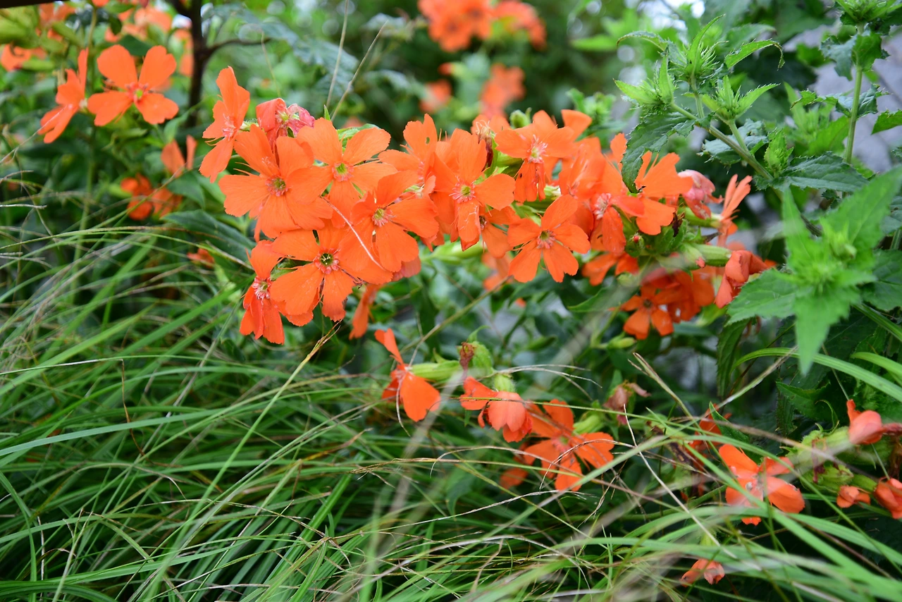 동자꽃도 풍성하다. 환한 주황색인데도 슬픈 느낌이 드는 건 꽃에 얽힌 전설 때문이겠지. 오세암 이야기처럼 폭설에 마을로 내려간 스님을 기다리다 추위와 배고픔을 견디지 못하고 동사한 동자승의 이야기가 오버랩되는, 진한만큼 더 슬픈 느낌의 동자꽃이다.