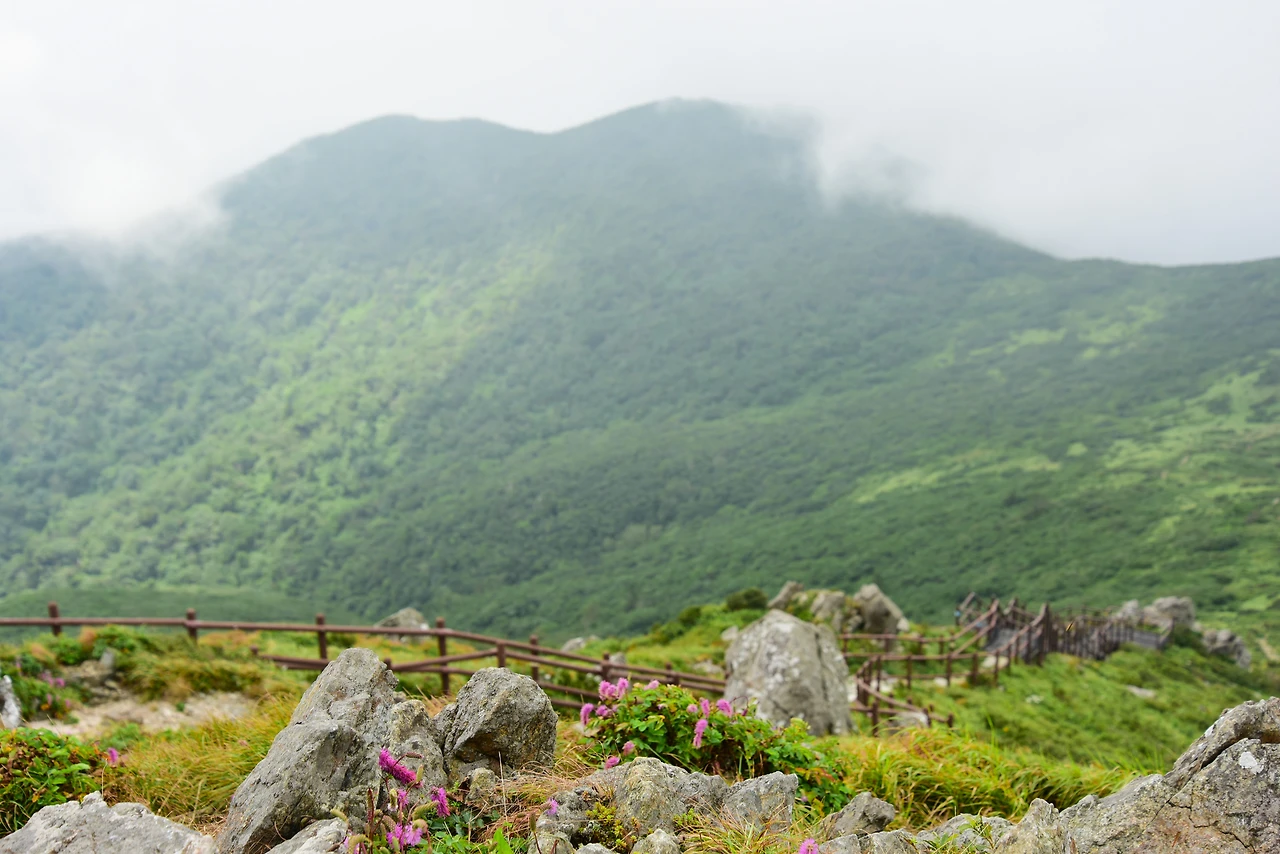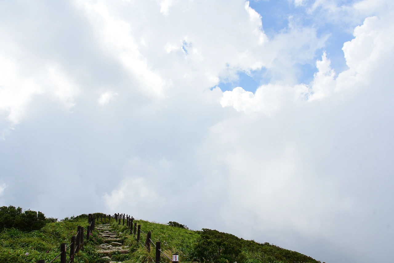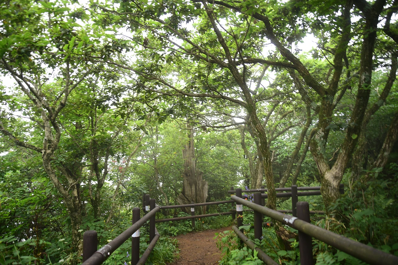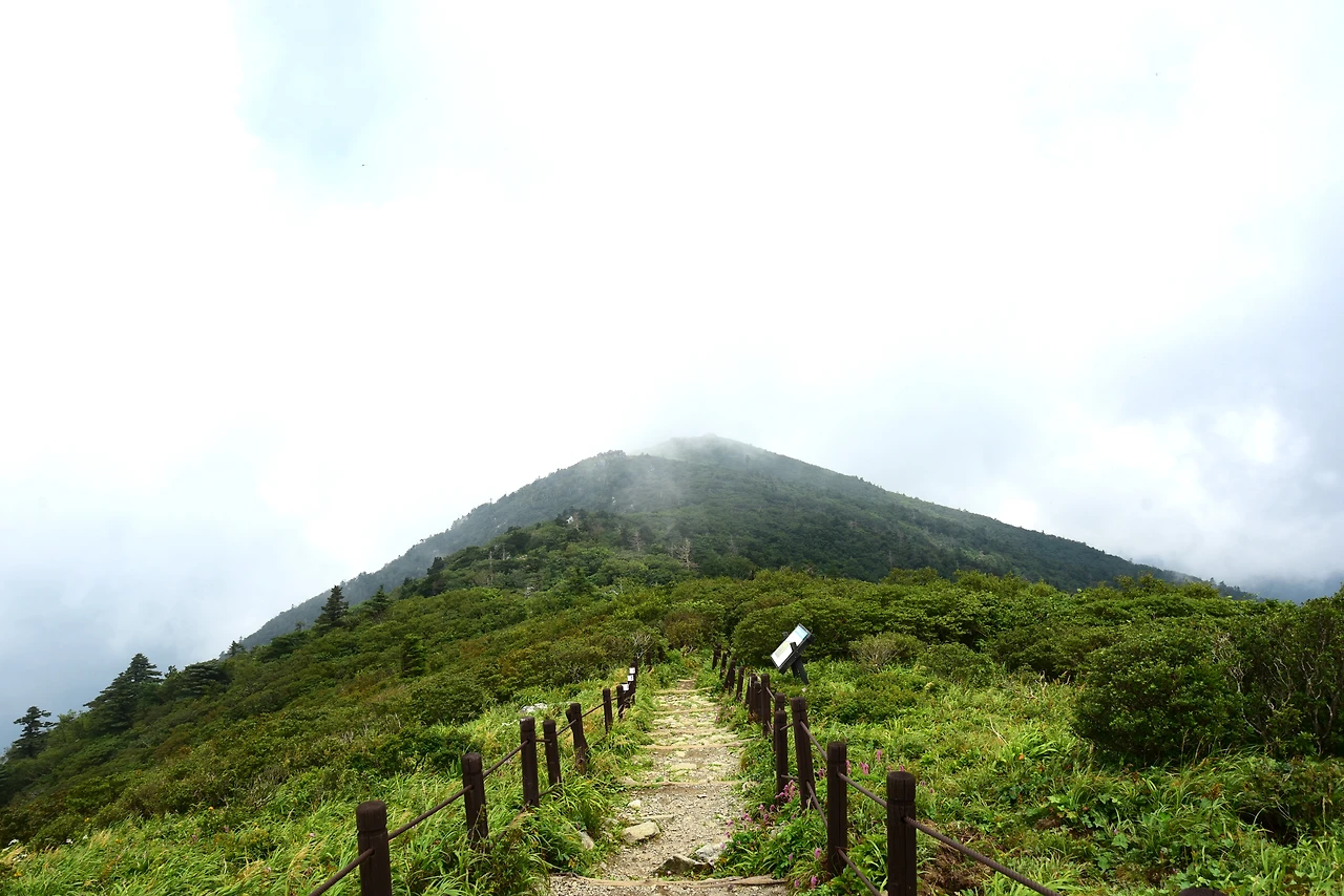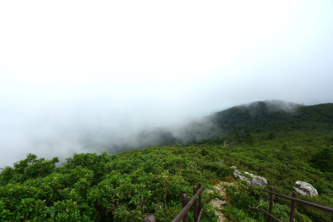 구름 속의 덕유산 등산로. 일단 중봉으로 간다.