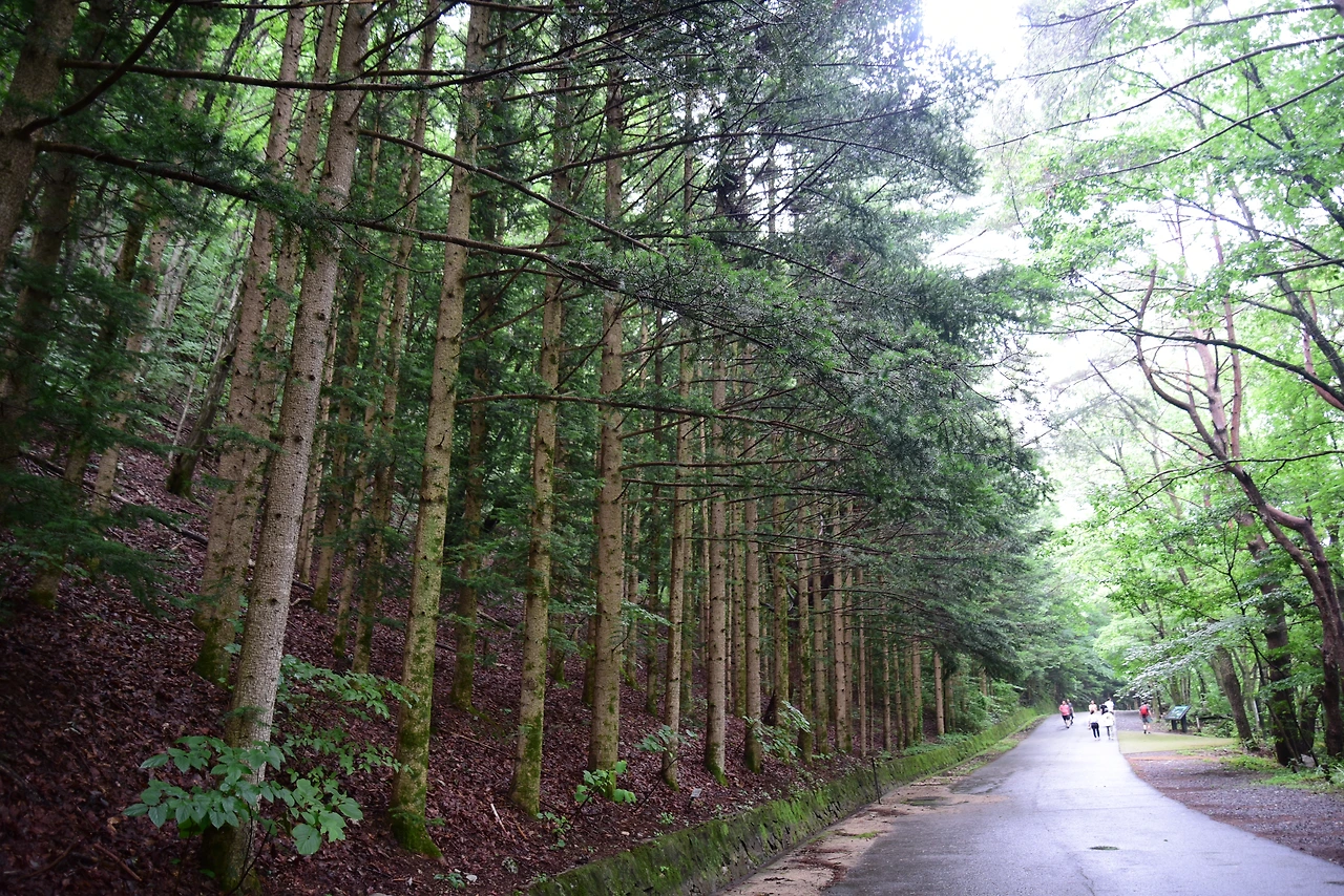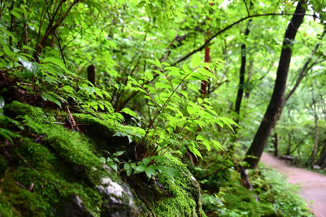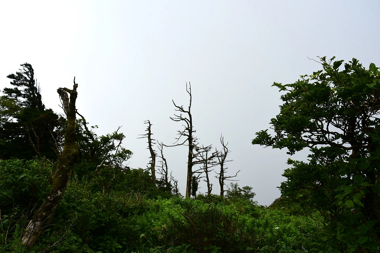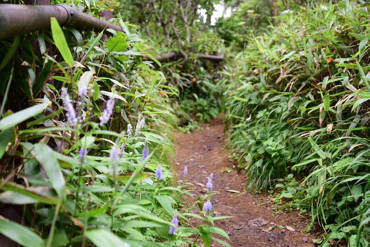 풀이 많이 자란 숲길을 걸어야 해서 입은 긴 바지가 젖어 다리에 감기고, 방수 기능이 떨어진 오래 신은 등산화가 질퍽거리고, 비닐 우비 속의 옷은 땀에 절어 습도와 온도를 더 높여준다.