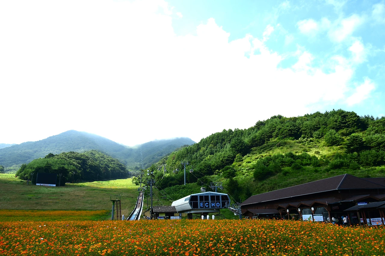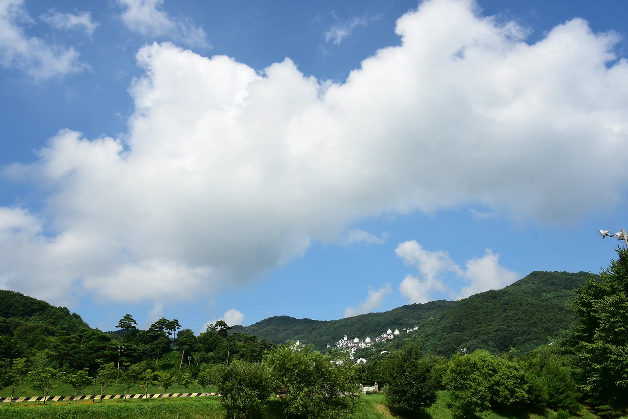 무주 덕유산리조트 도착 시간이 9시 50분이라고 앞글에서 밝혔다. 파란 하늘에 흰구름 전형적인 여름 날씨의 아름다운 모습이었다.