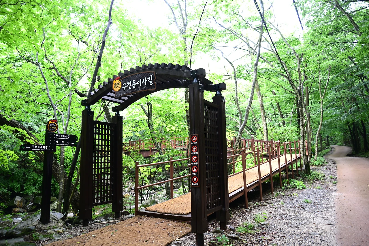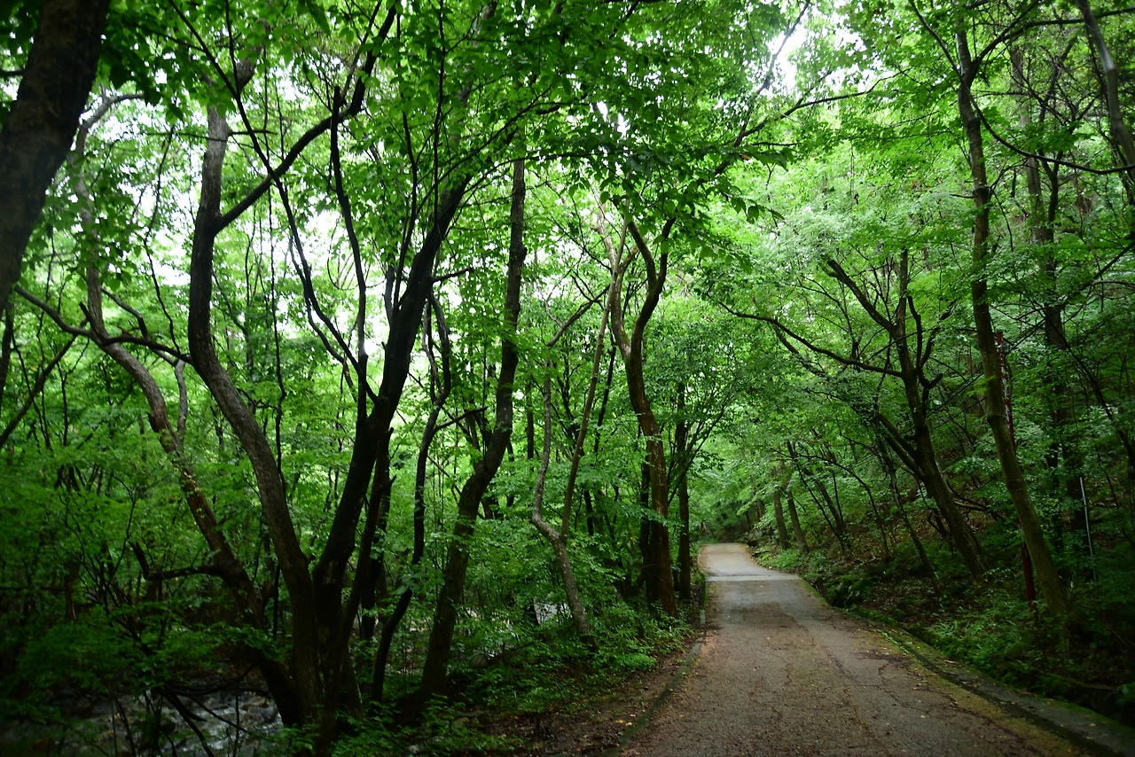 평소에는 폭포 같지 않던 구천폭포가 제법 폭포의 느낌이 난다. 물소리의 음향 효과가 대단하다. 숲길을 벗어나 탁 트인 포장도로로 걷기 때문이기도 있겠지만 요란한 물소리만큼 느끼는 기분이 상쾌하고 시원하다.