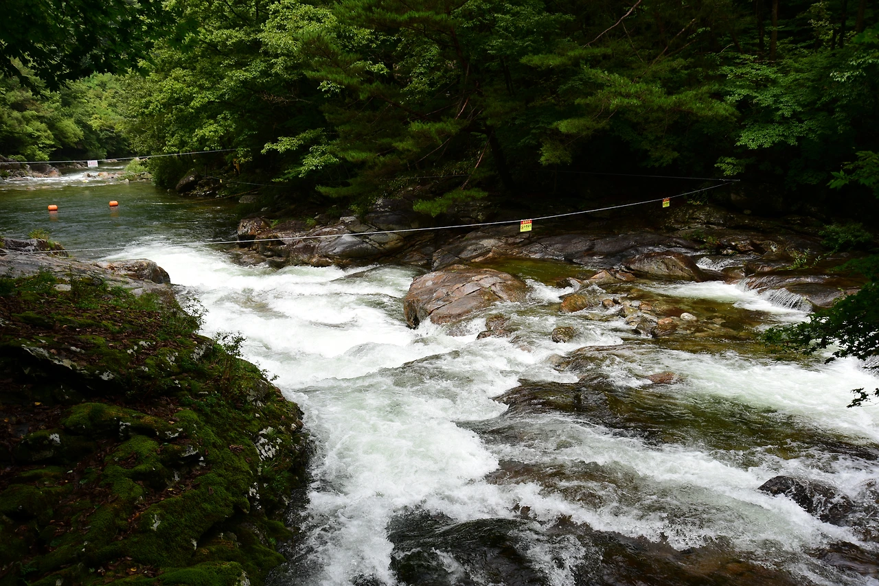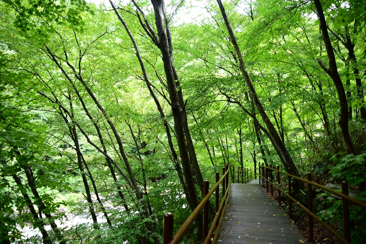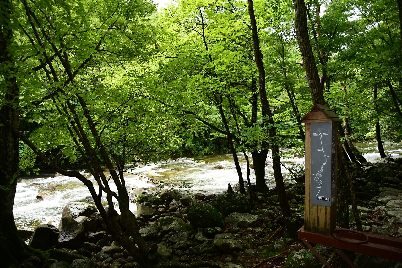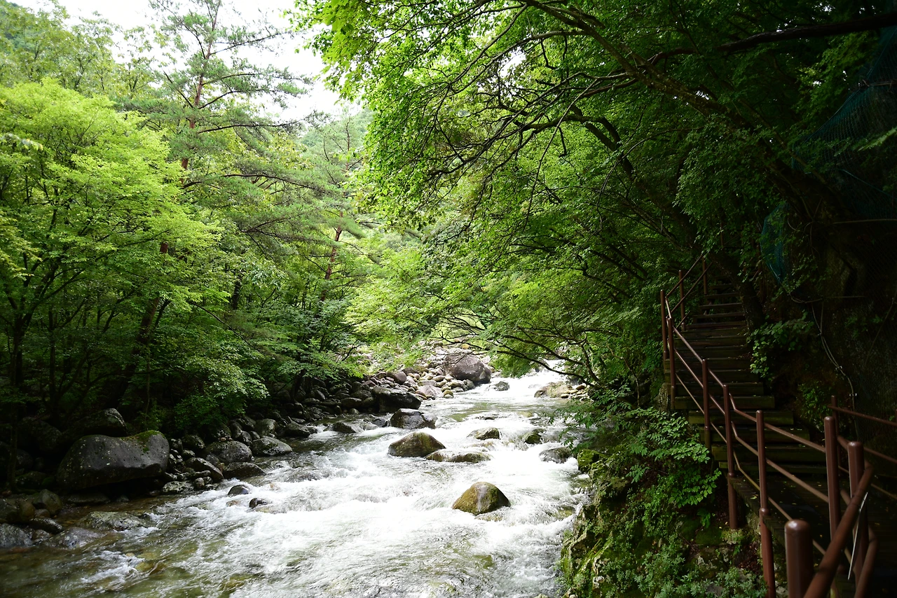 계곡으로 통하는 계단도 몇군데 설치되어 있었다. 계곡물에 발을 담그고 하루종일 앉아있어도 더위를 잊어버릴 것 같다.