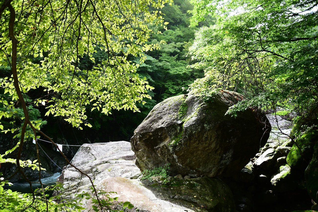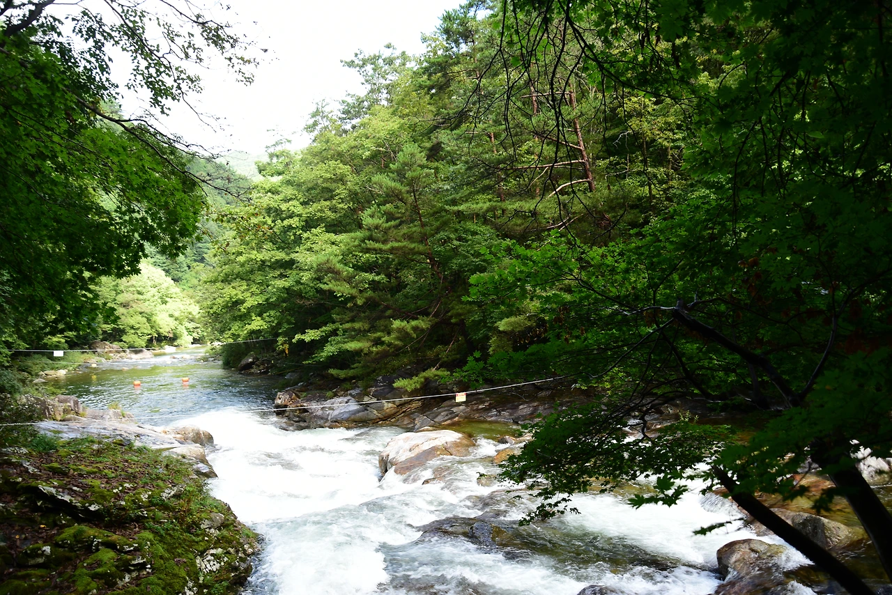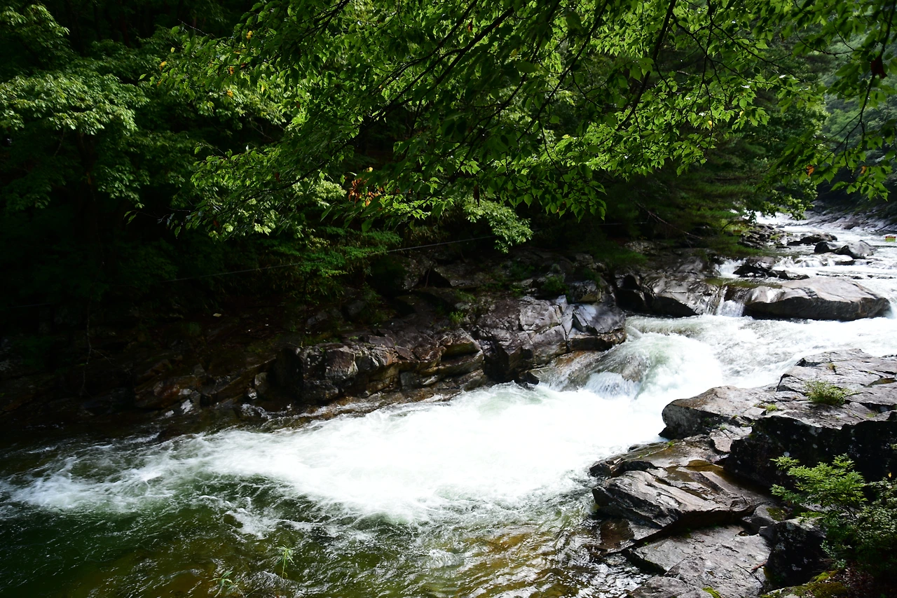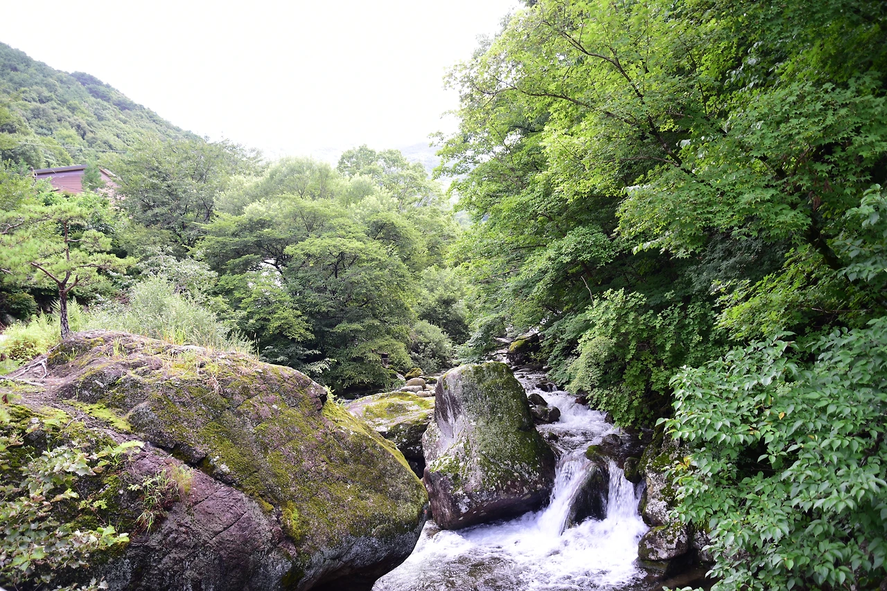 또 하나 수량이 풍부한 계곡 풍경을 실컷 감상할 수 있는 것! 우렁찬 물소리와 굽이쳐 흐르는 장쾌한 물줄기는 보는 것만으로도 더위가 싹 가시는 느낌이다.