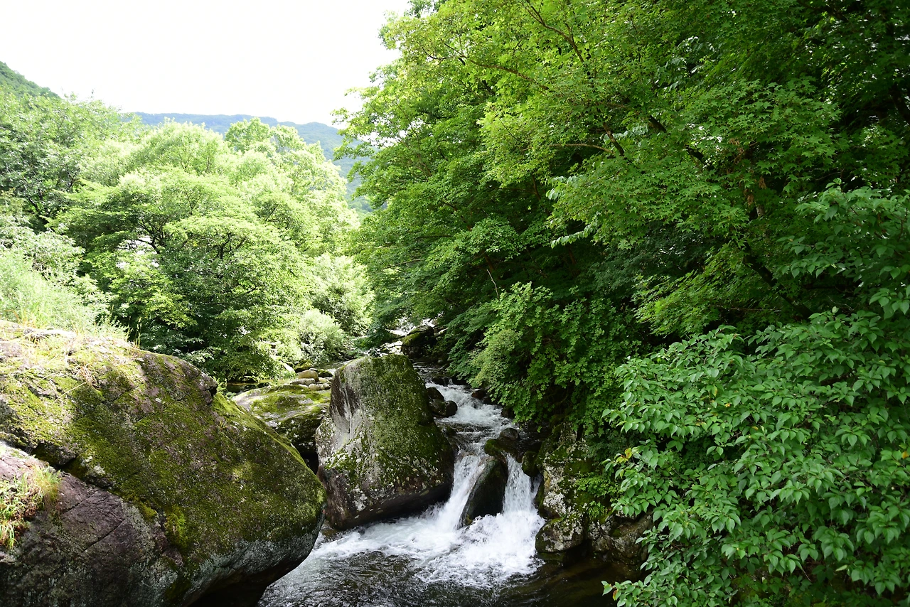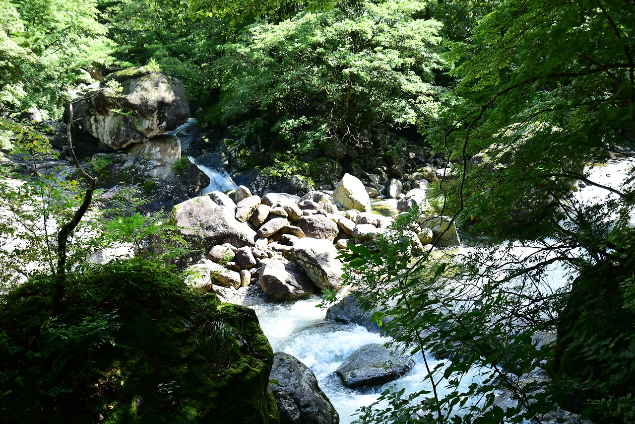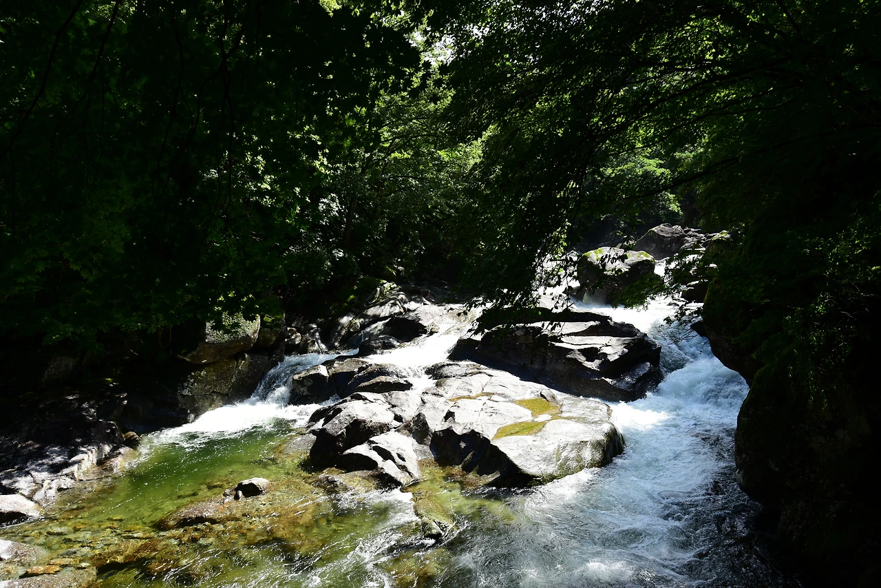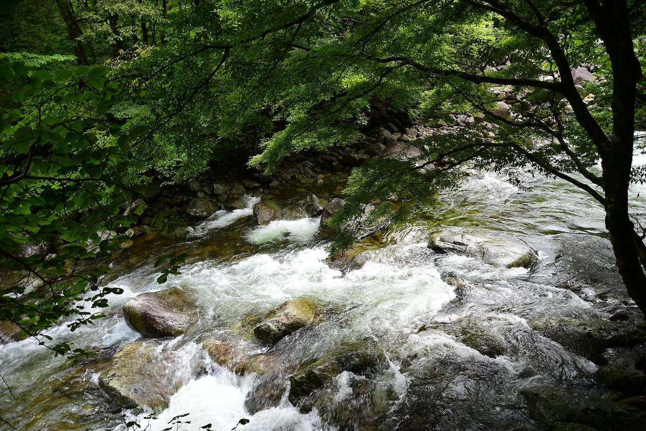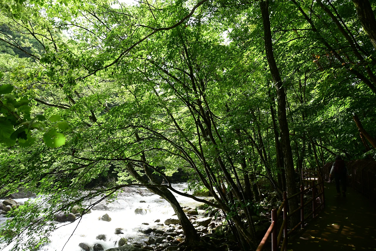 또 하나 수량이 풍부한 계곡 풍경을 실컷 감상할 수 있는 것! 우렁찬 물소리와 굽이쳐 흐르는 장쾌한 물줄기는 보는 것만으로도 더위가 싹 가시는 느낌이다.