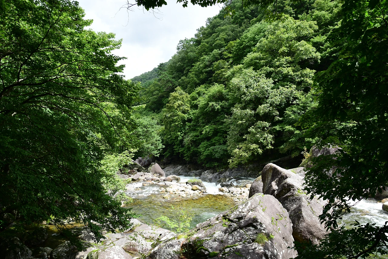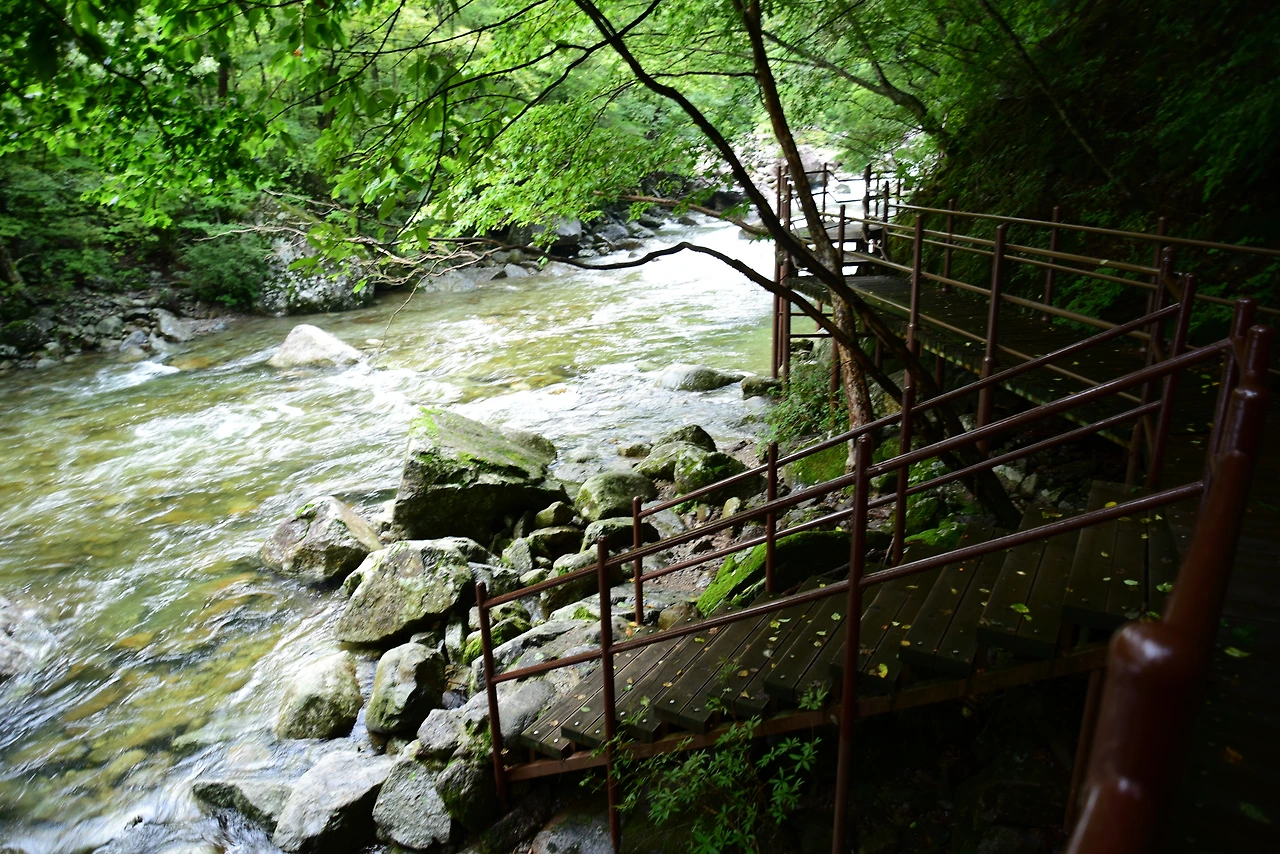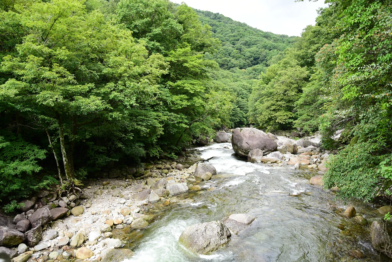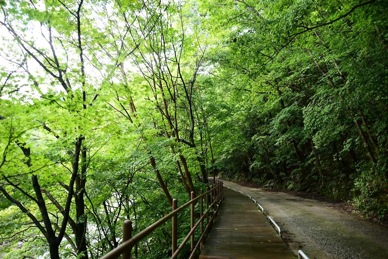 또 하나 수량이 풍부한 계곡 풍경을 실컷 감상할 수 있는 것! 우렁찬 물소리와 굽이쳐 흐르는 장쾌한 물줄기는 보는 것만으로도 더위가 싹 가시는 느낌이다.