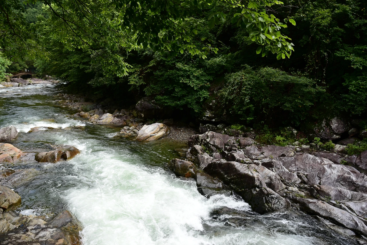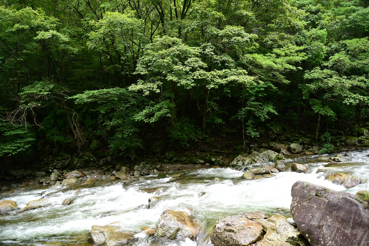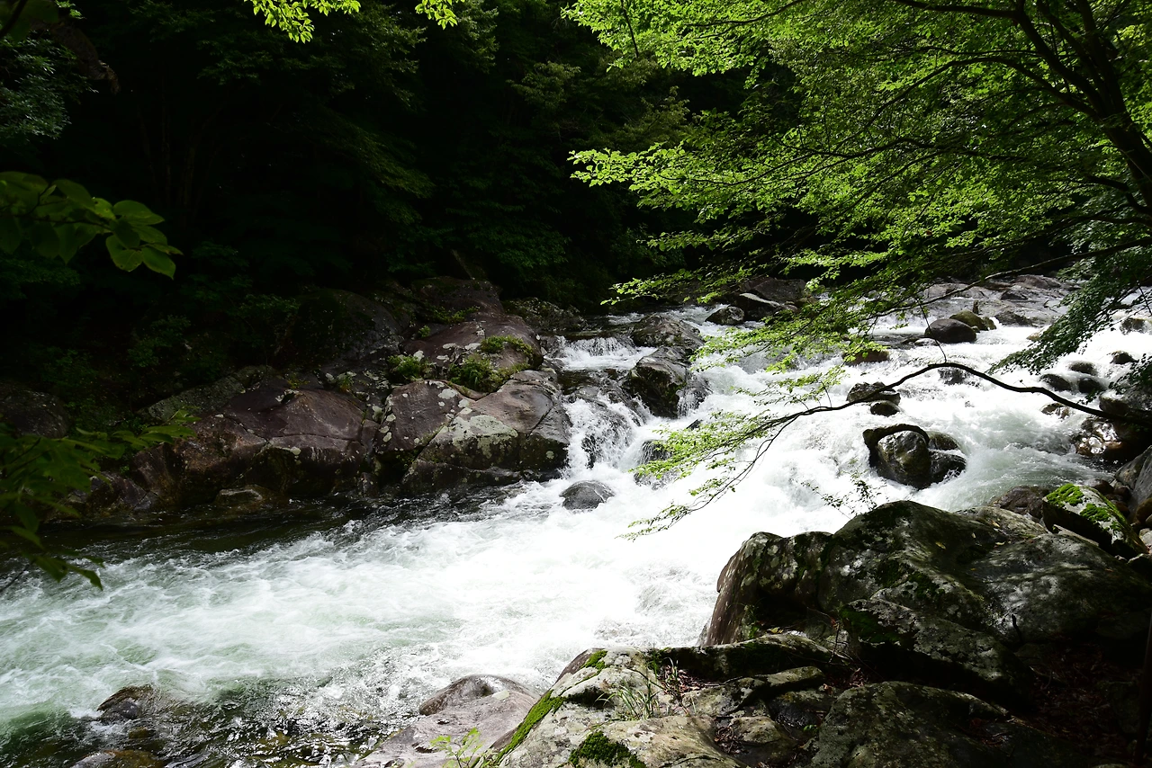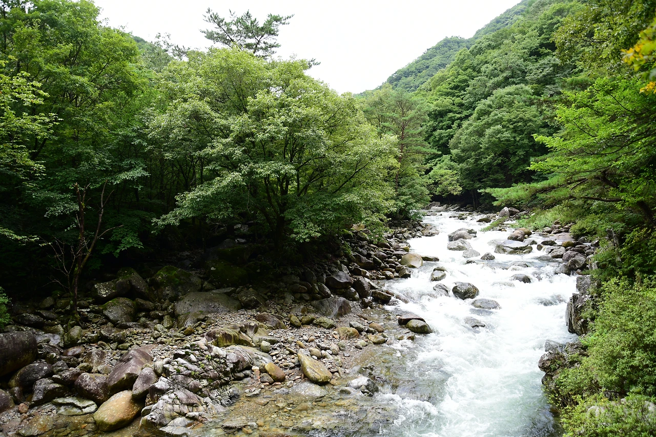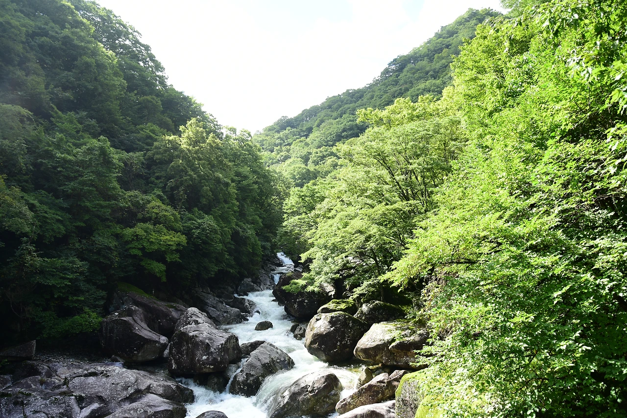 또 하나 수량이 풍부한 계곡 풍경을 실컷 감상할 수 있는 것! 우렁찬 물소리와 굽이쳐 흐르는 장쾌한 물줄기는 보는 것만으로도 더위가 싹 가시는 느낌이다.