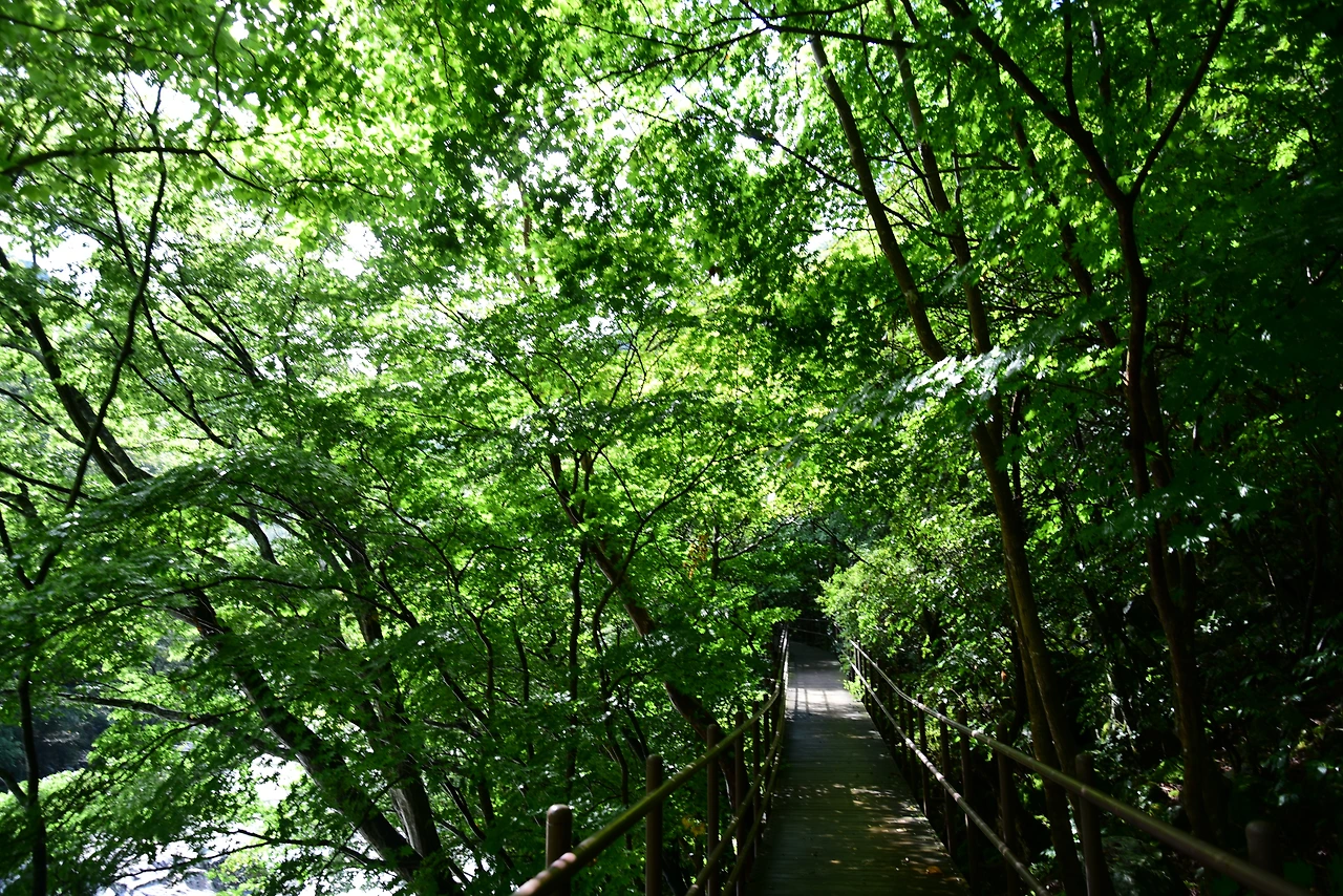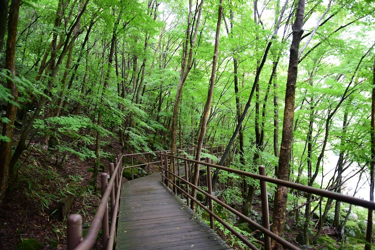 푸르름이 우리를 반긴다. 보기만 해도 눈의 피로를 풀어준다는 '녹색'의 숲으로 안기면 온몸의 세포와 마음까지도 '녹색'의 효과에 반응하는 느낌이다. 데크로 연결된 길은 일반 등산로와 다르게, 숲 터널을 통과하는 경우가 많기 때문에 '녹색'의 세계로 들어가는 느낌이 훨씬 강해서 개인적으로 데크길을 매우 좋아한다.