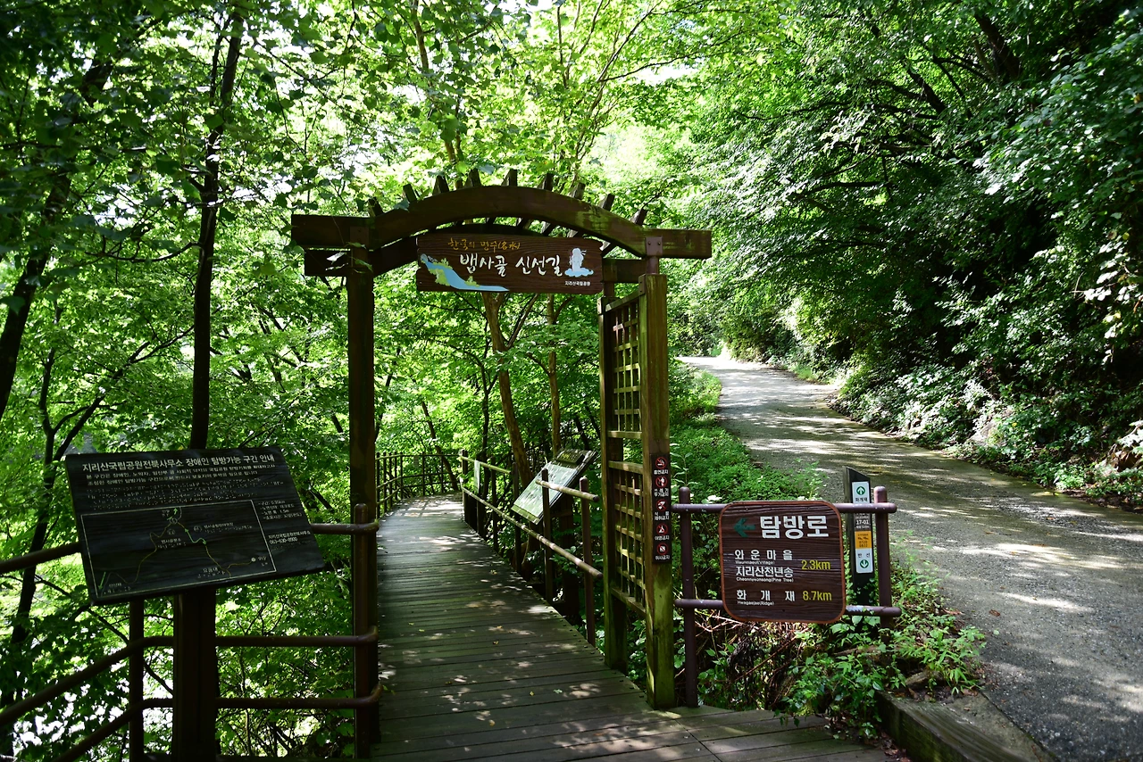 뱀사골 신선길의 공식 들머리이다. 들머리에서 와운마을까지는 2.3km.