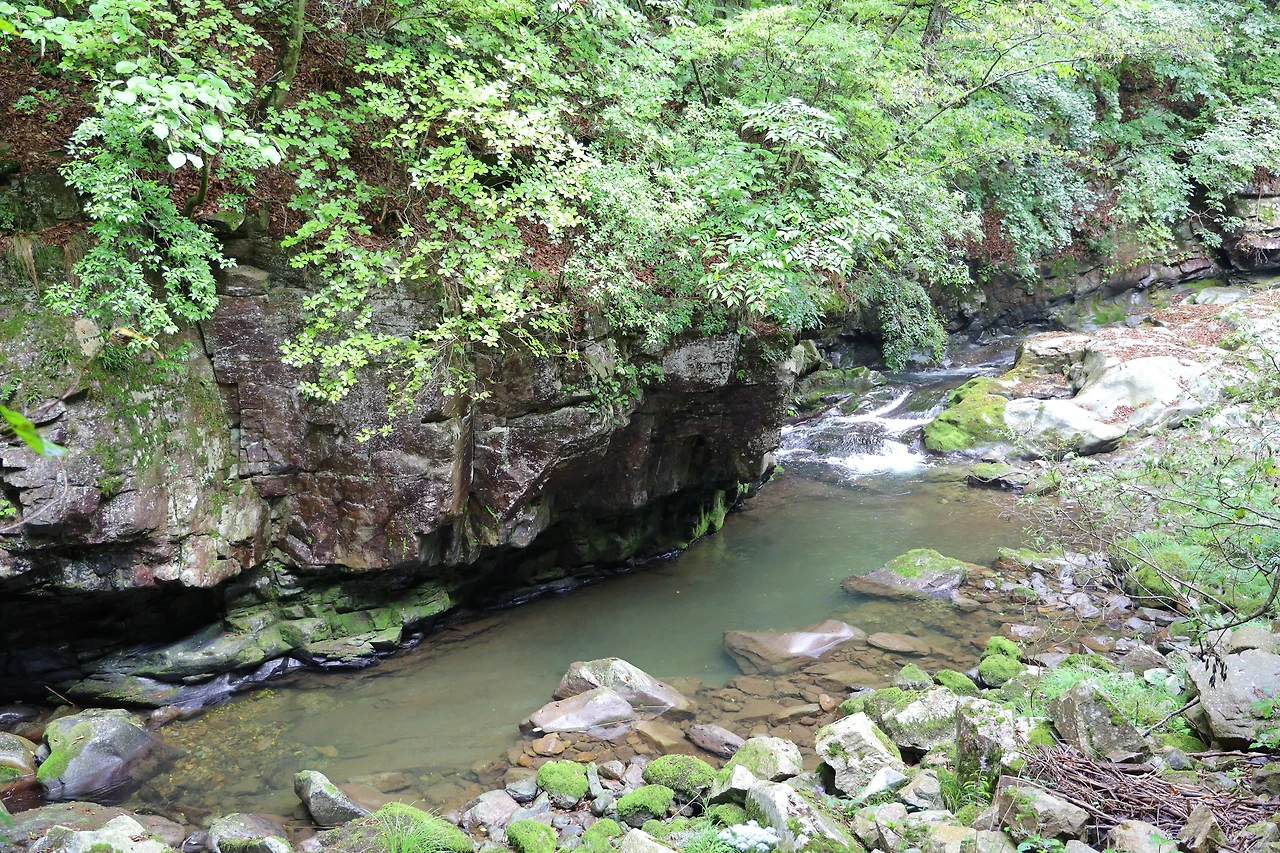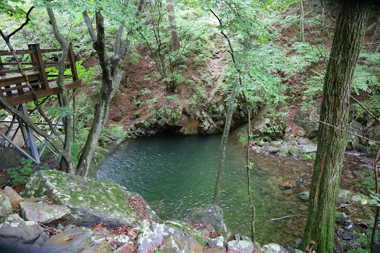 제1용소까지 왔다. 명주실을 풀어넣으면 한 타래는 너끈히 들어갈까? 소가 얼마나 깊은지 시퍼렇다.