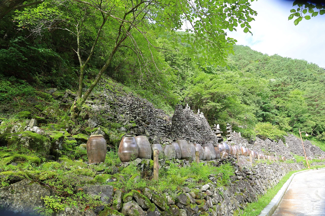 입구에 늘어선 돌탑과 장독들이 우리를 맞는다. 하나하나 돌로 쌓아 올린 돌탑은 주민들의 염원을 담은 소망탑이라고 한다. 줄지어 놓은 항아리에도 뭔가 글씨를 써 놓았다. 이 길을 만들 때에 마을 사람들이 한데 모여 으샤 으샤 축제처럼 이 길의 조형물을 설치했으리라 생각하니 더욱 정감 있게 느껴졌다.