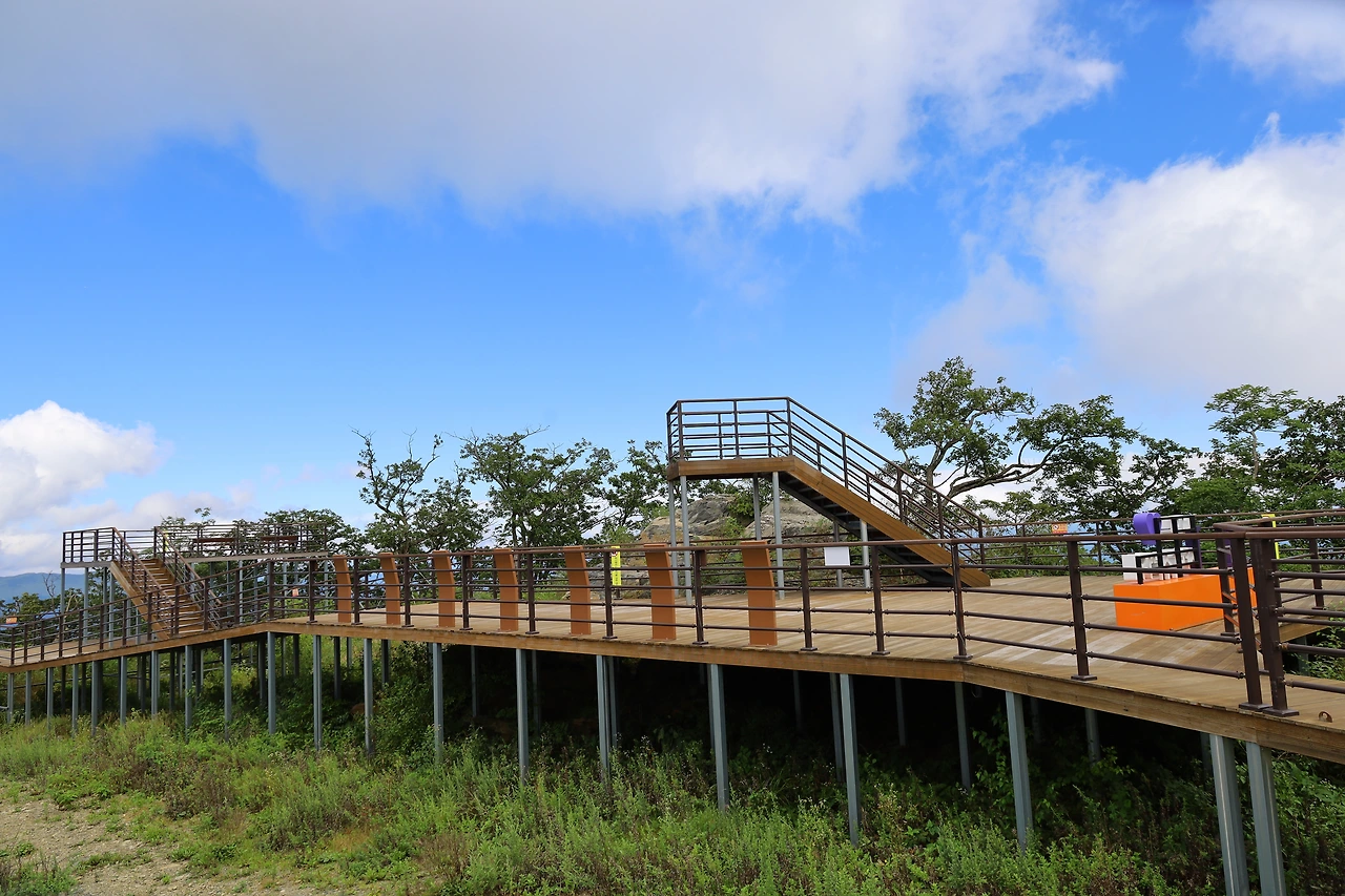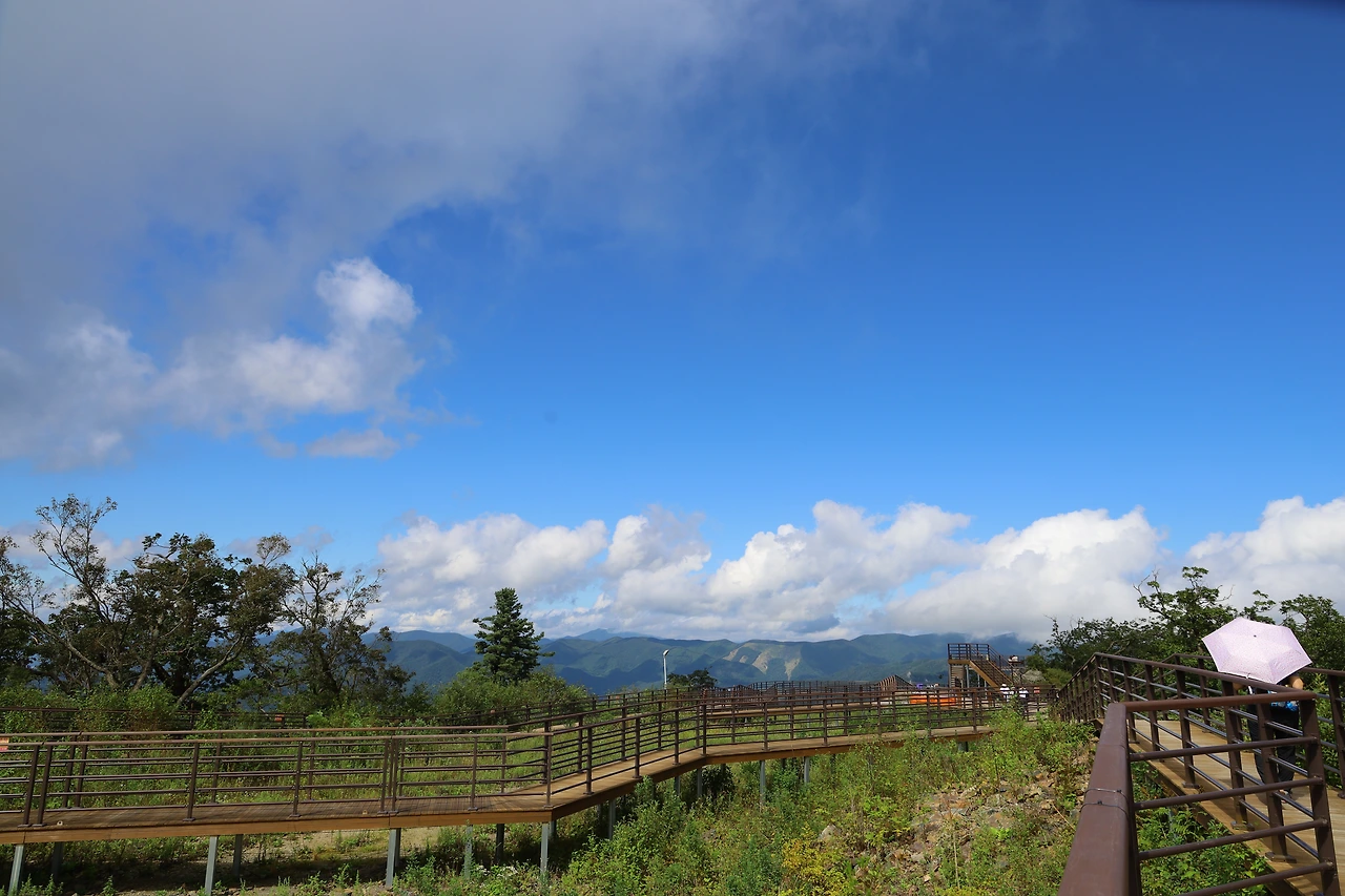 짧지만 데크길을 조성하여 한 바퀴 걸을 수 있게 해 놓았다. 하늘빛이 심쿵하게 예쁘다. 구름도 찬조 출연.