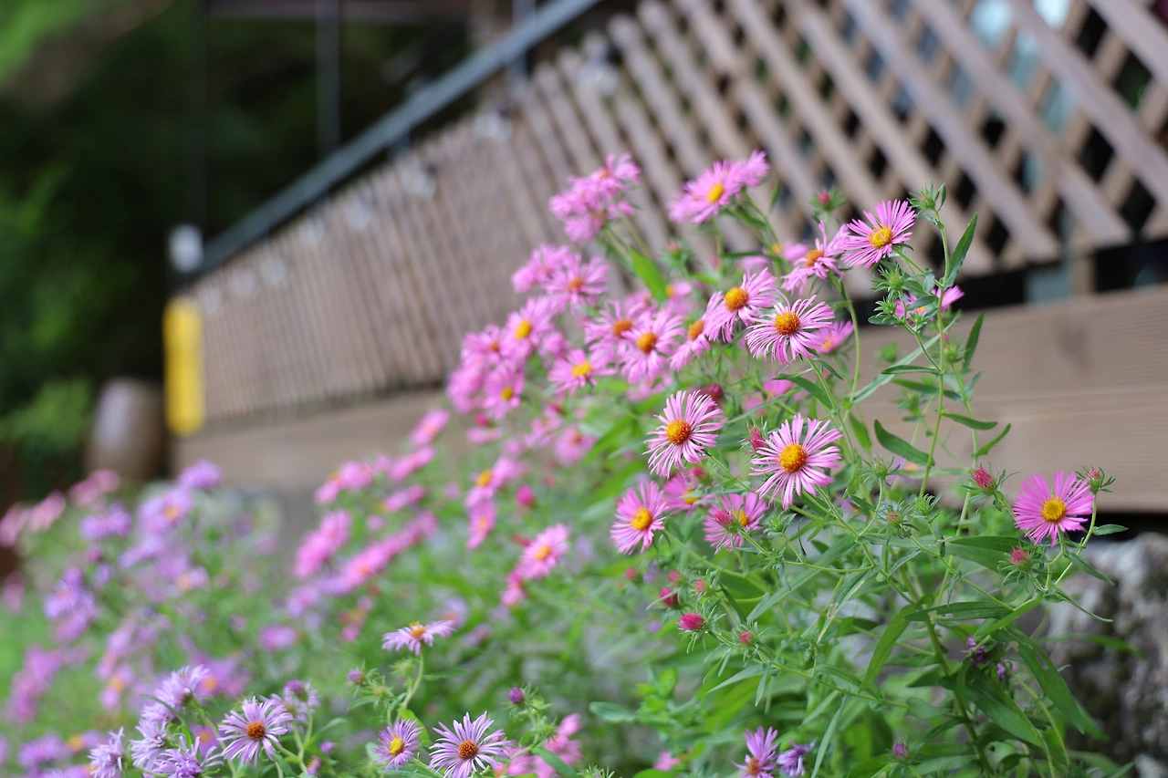 카페 앞에 아스타?를 예쁘게 키워놓았다.