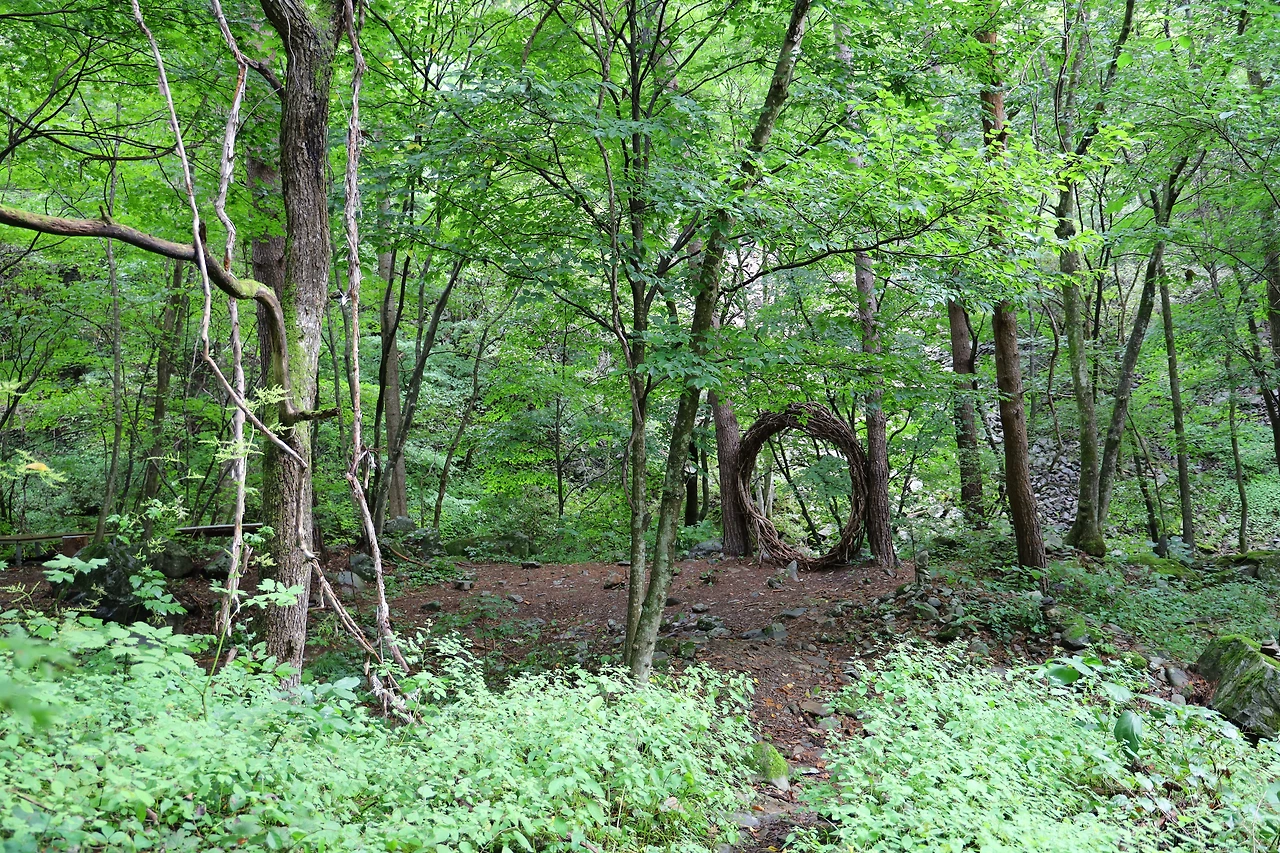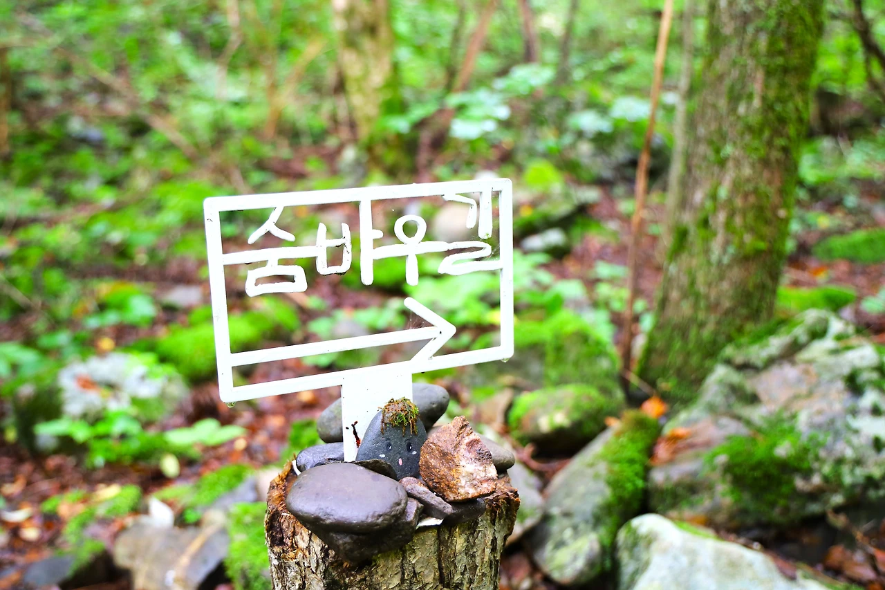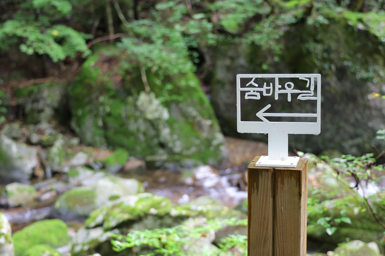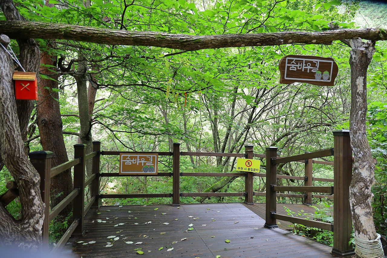 항골계곡의 걷기길 이름은 숨바우길이다. 강원도 감자 바우라는 말에 익숙한 편인데, 바우에 숨을 붙인 숨바우길이 자연 속을 숨 쉬듯 즐기며 걷는 길이라는 생각이 들었다.