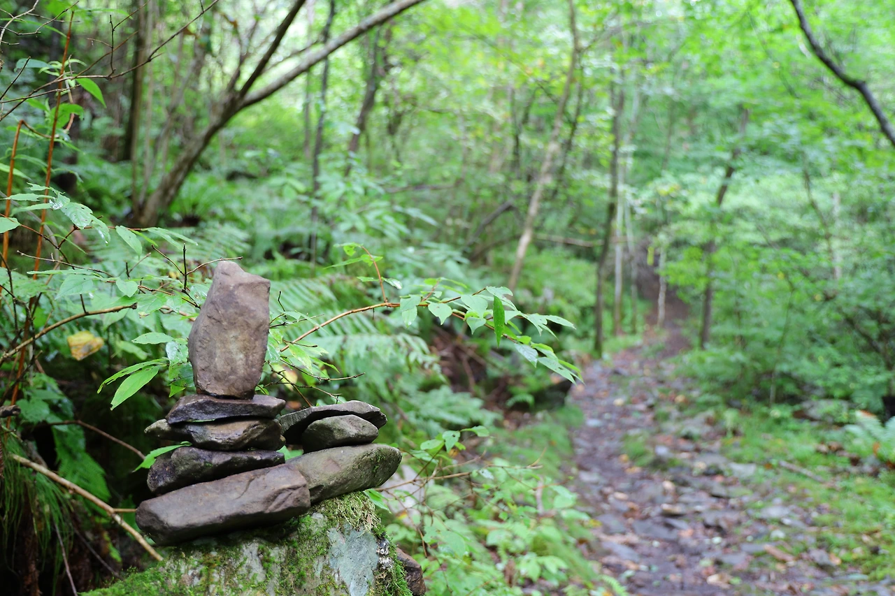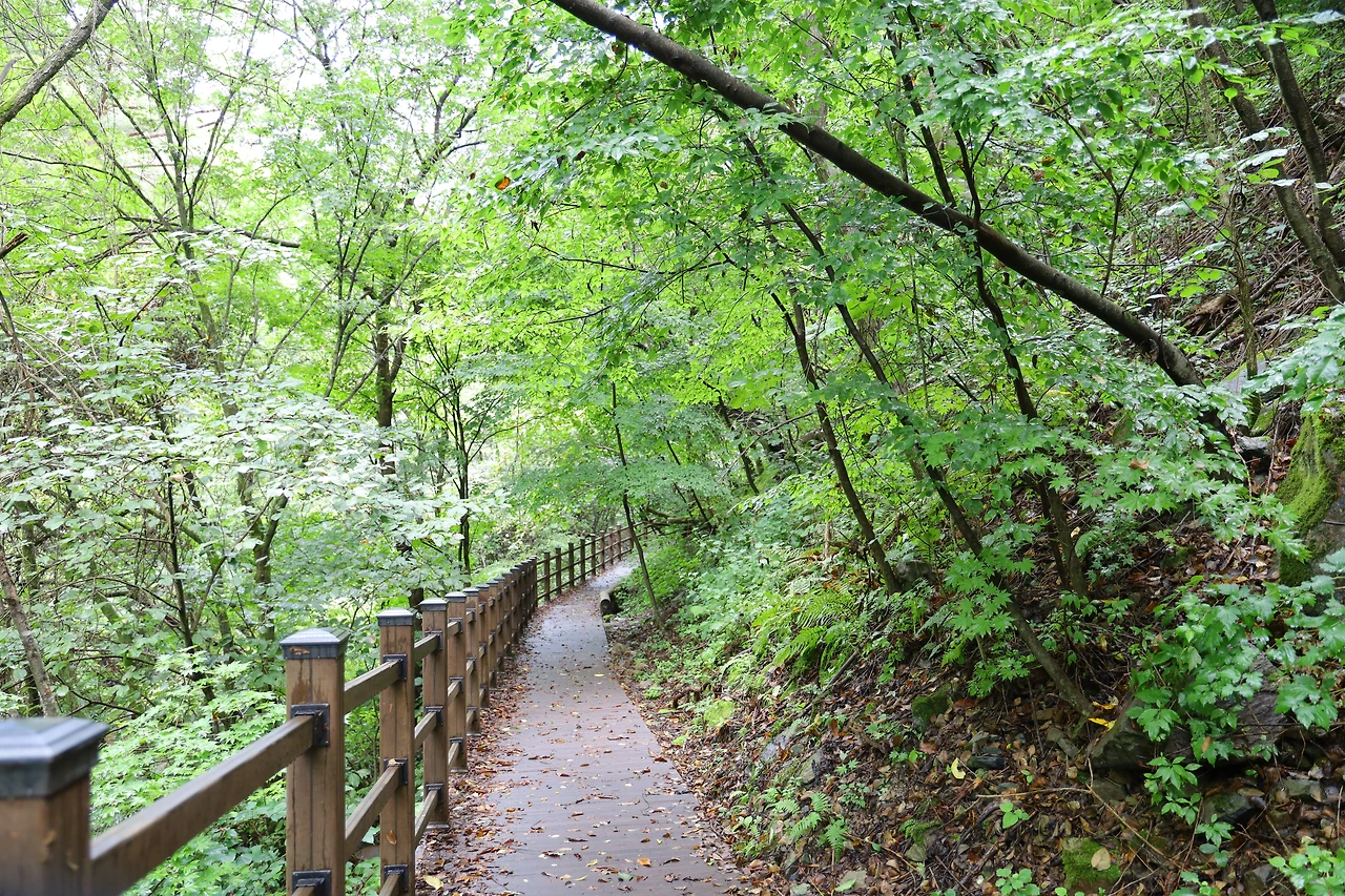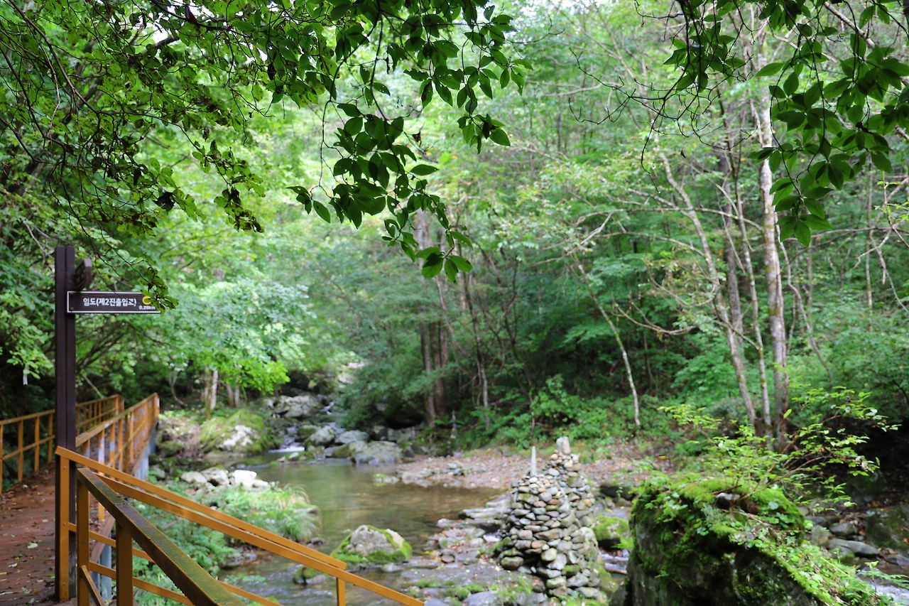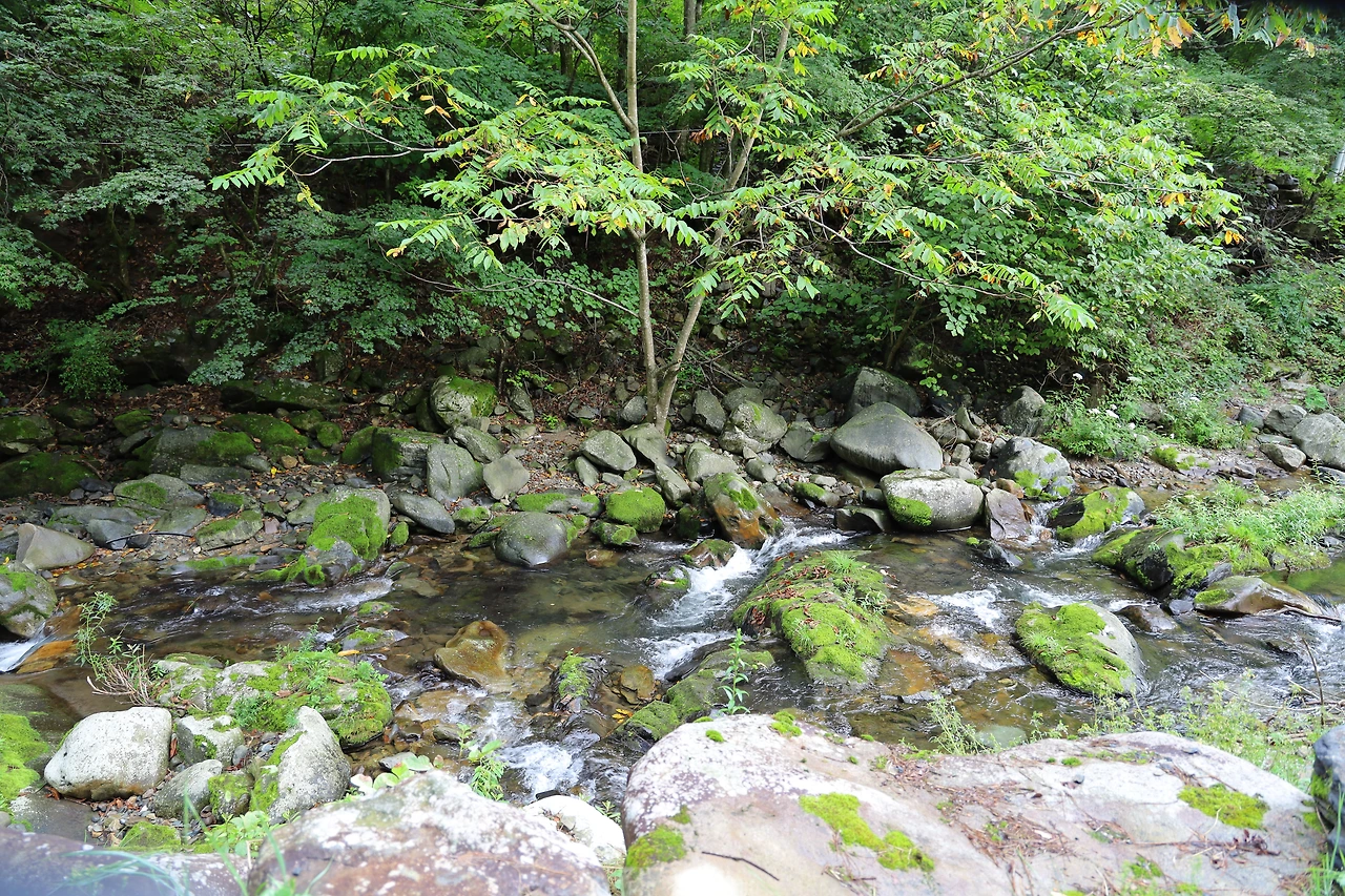 항골계곡의 걷기길 이름은 숨바우길이다. 강원도 감자 바우라는 말에 익숙한 편인데, 바우에 숨을 붙인 숨바우길이 자연 속을 숨 쉬듯 즐기며 걷는 길이라는 생각이 들었다.