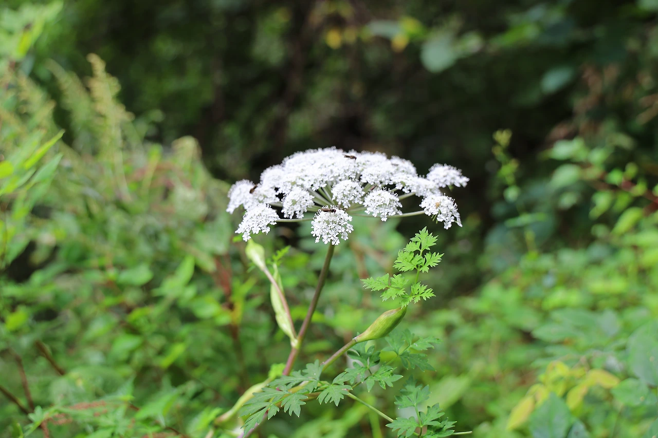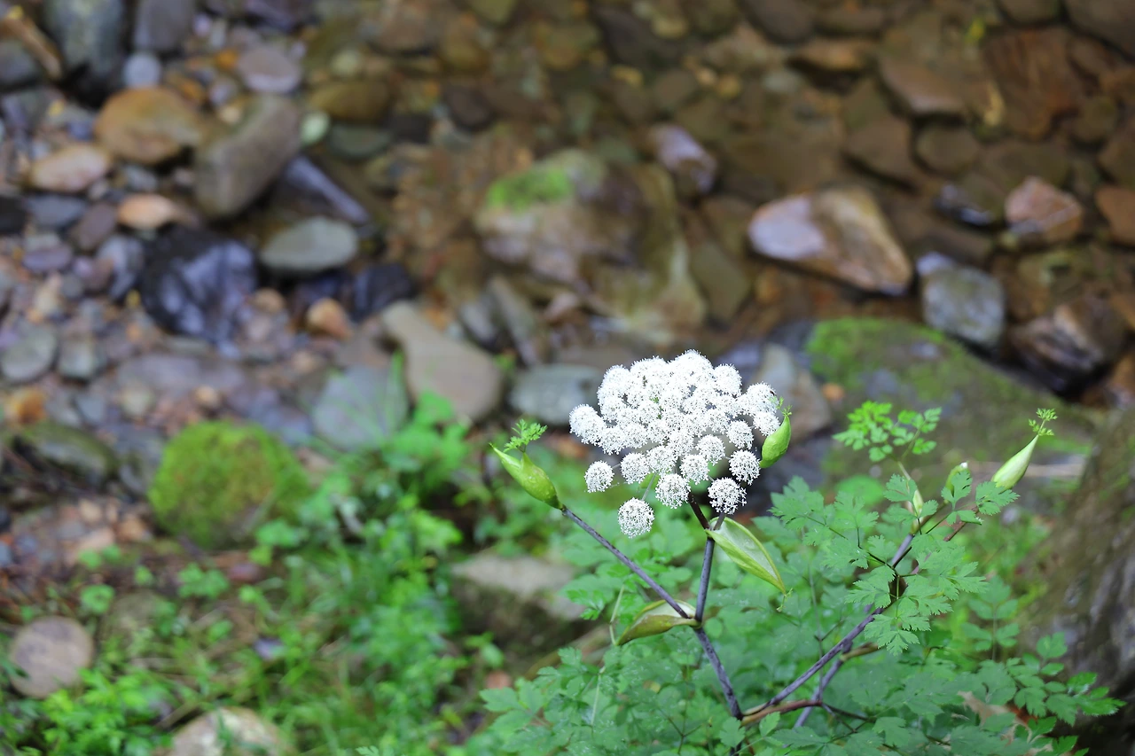 궁궁이는 꽃이 동글동글한 모양이 여러 개 모여있다. 산골짜기 냇가에 많이 자라는 식물이다.