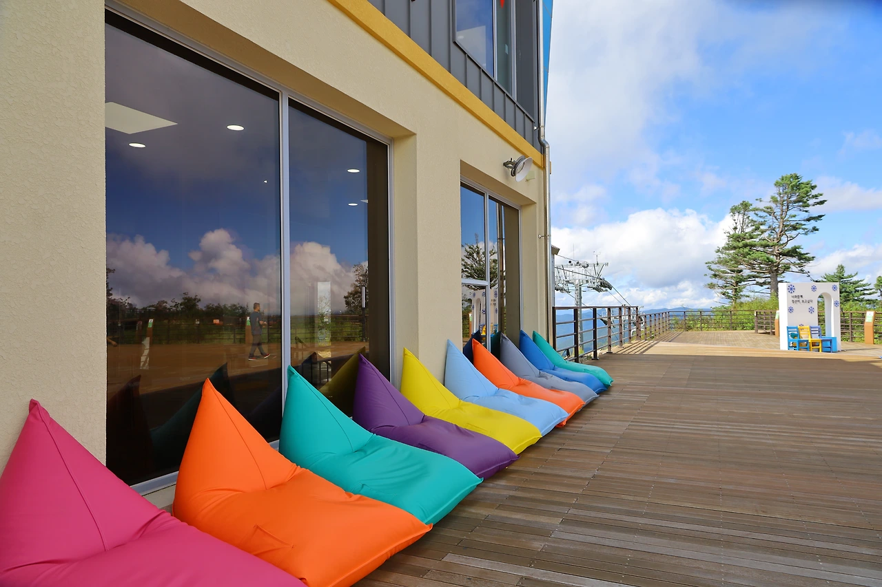 건물 뒤라 그늘은 보장. 알록달록 의자에 앉아 하늘멍 때리면 좋을 것 같다.
