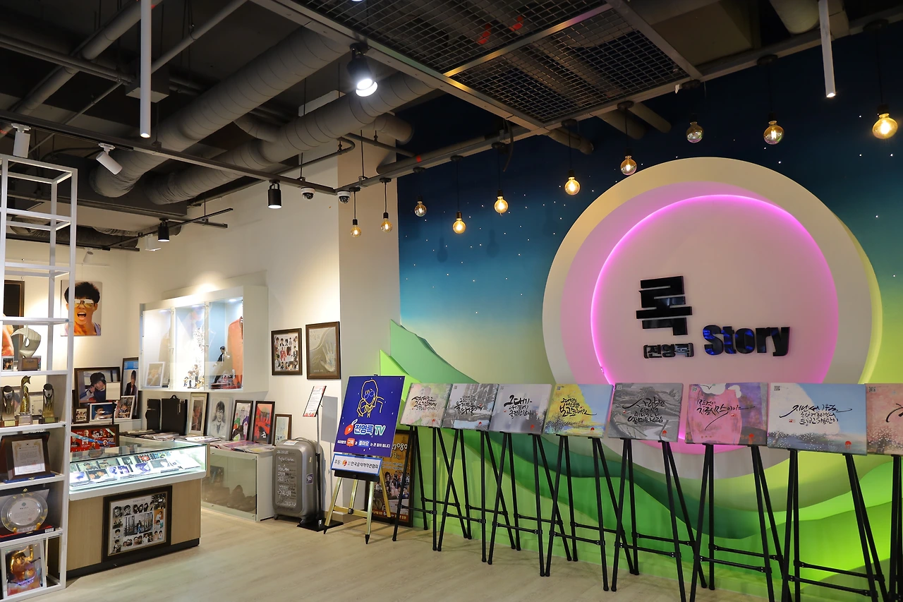 '록'이라는 카페를 찾아갔다. 가수 전영록의 기념물들이 많이 전시되어 있었다.