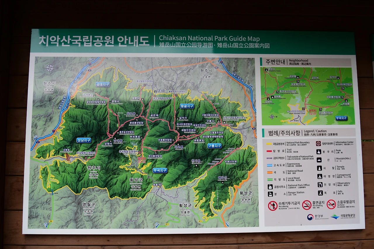부곡탐방지원센터에서 큰무레골로 올라가서 비로봉까지 가는 탐방로가 생겨서 치악산 정상 가기가 한결 수월해졌지만, 예전에 곧은재에서 비로봉으로, 다시 원점회귀한 18km의 치악산 산행은 이제 추억 속의 한 페이지다. 큰무레골로 올라 비로봉까지 등산로가 왕복 9km 정도라고 하니, 한 번 도전해 볼 수도 있다는 생각이 든다.