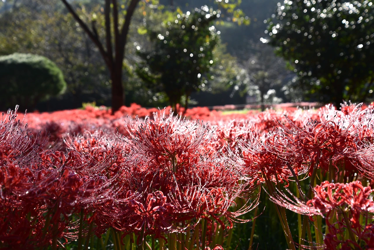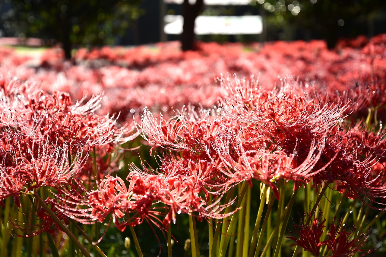 이른 아침이라 운 좋게 이슬이 내려앉은 눈부신 꽃무릇의 모습을 볼 수 있었다.