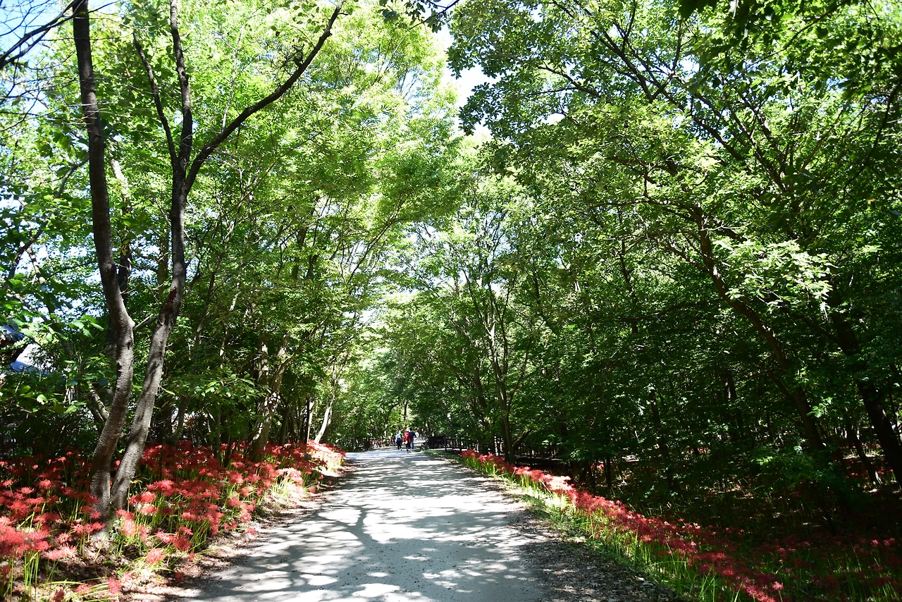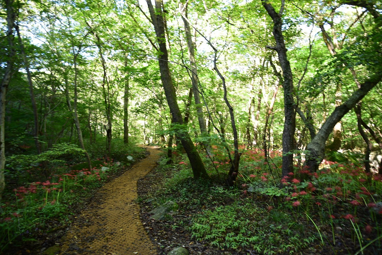 꽃무릇 군락지를 뒤로 하고 숲길에 들어선다. 자생 꽃무릇이 간혹 보이지만, 개체수가 확연히 줄어들었다.