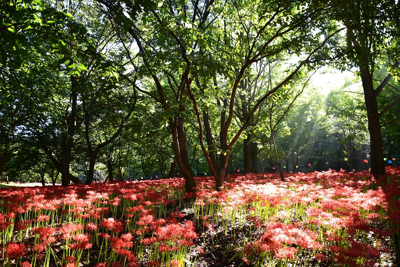 붉은 꽃무릇의 꽃잔치가 시작되었다.