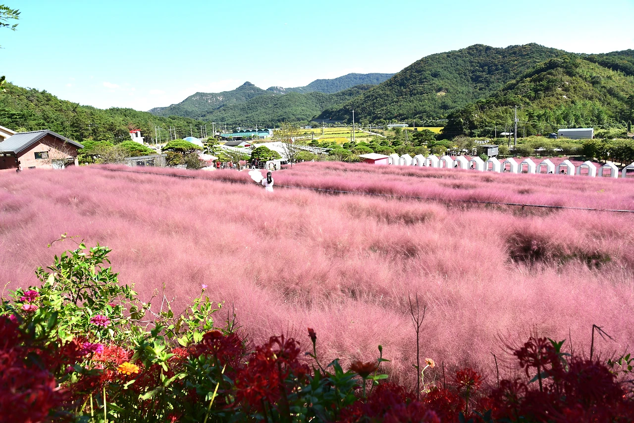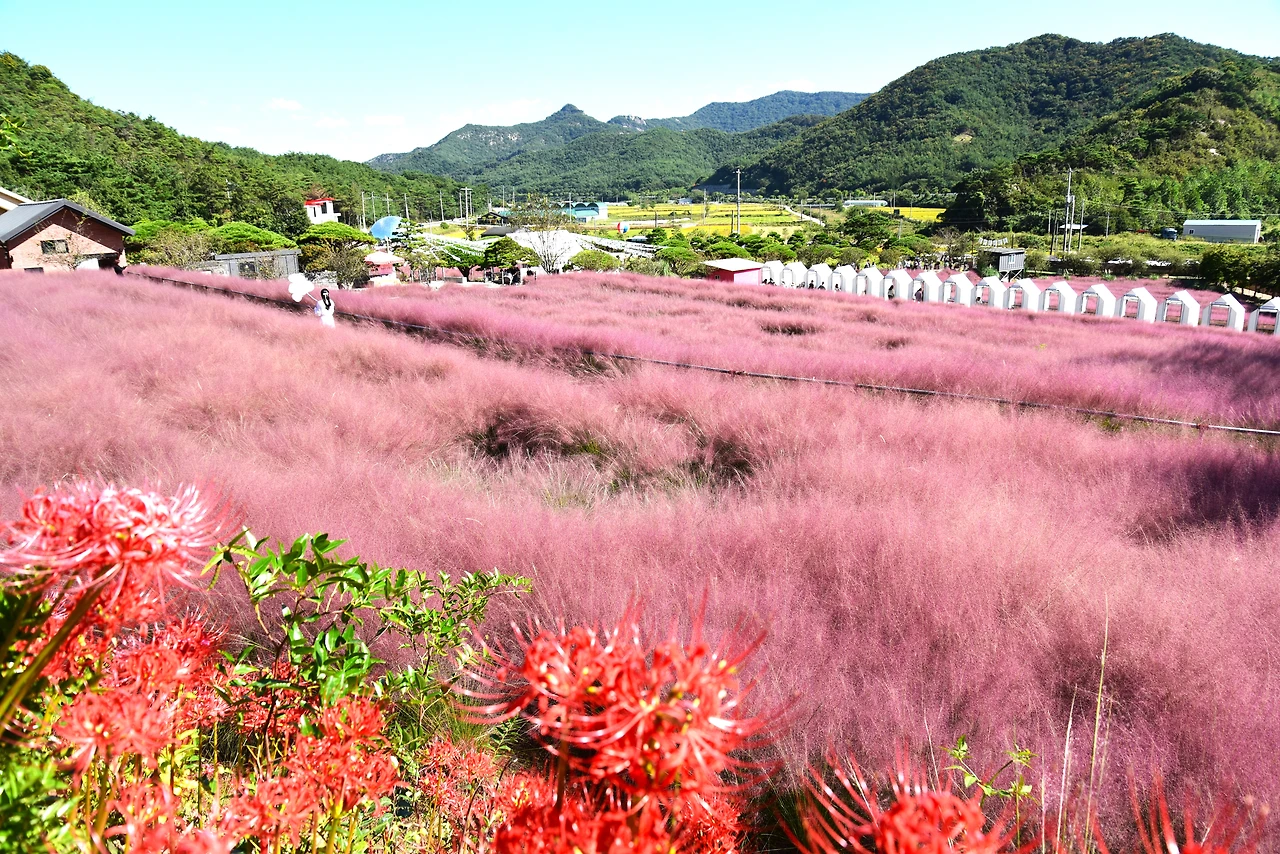 선운사에서 본 꽃무릇 군락지가 강렬하고 화려한 아름다움을 보여주었다면, 핑크뮬리 군락지는 꿈을 꾸는 듯 솜사탕처럼 폭신하기도 하고, 앙고라 털옷처럼 따뜻한 느낌이 든다.