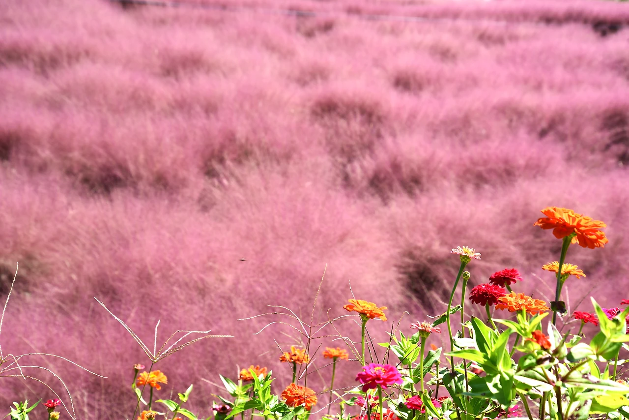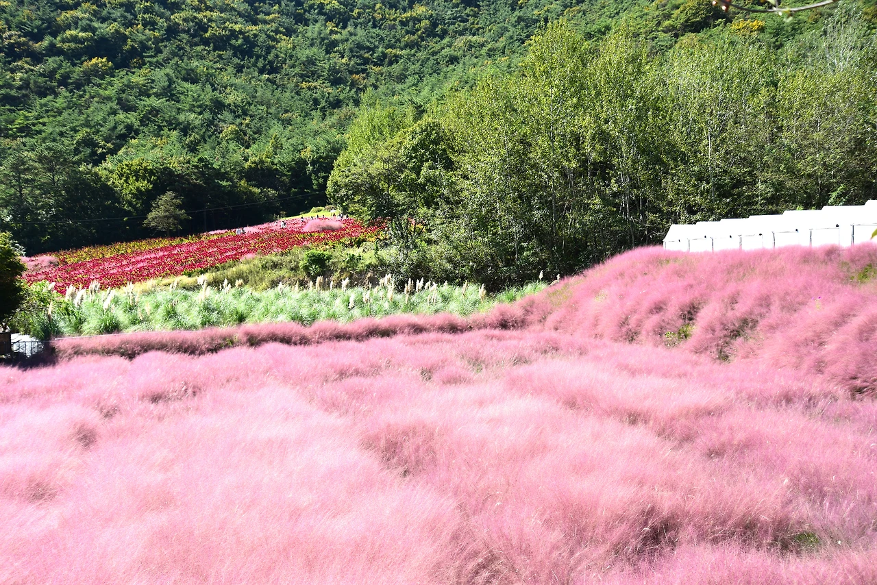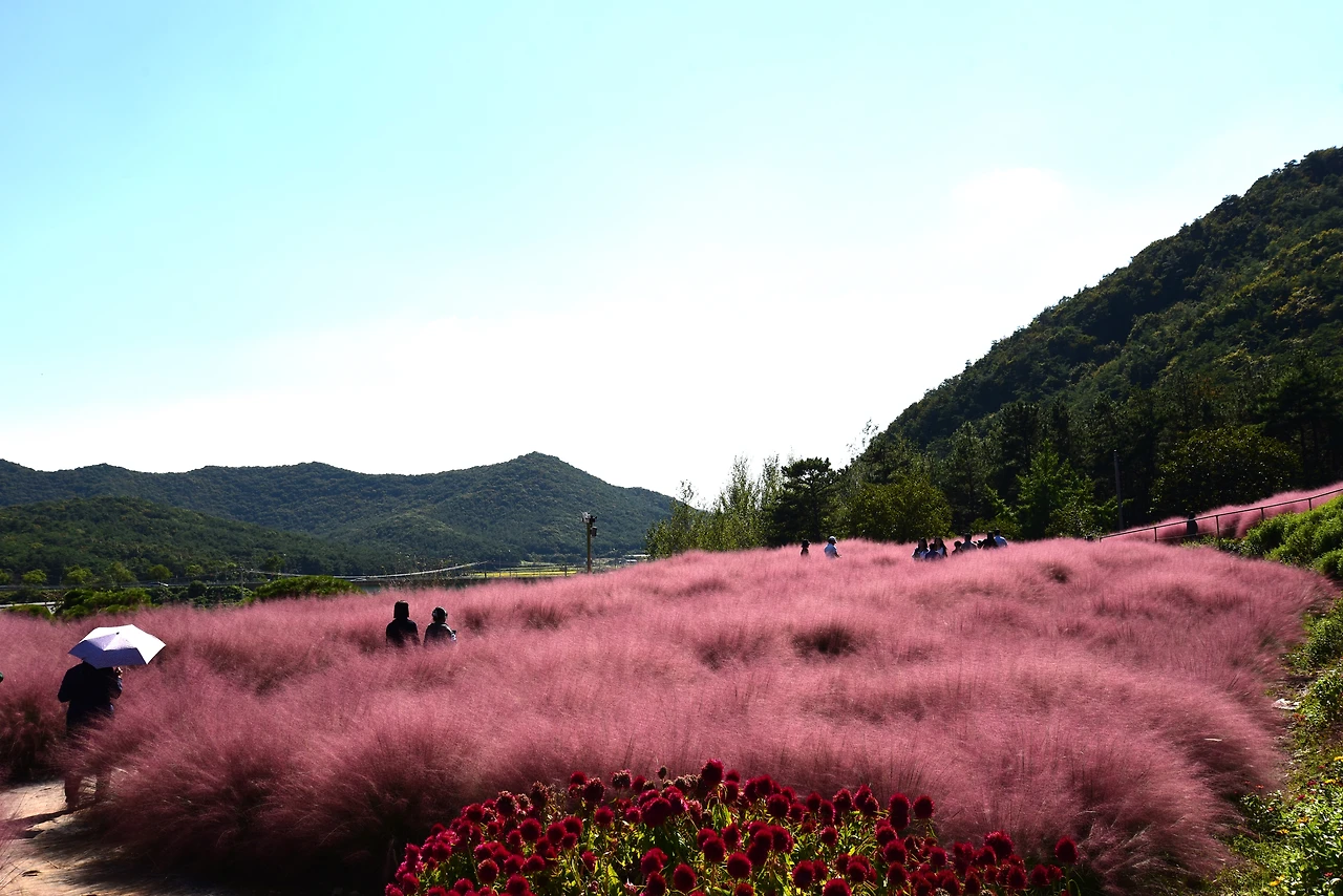 핑크가 주는 환상적인 분위기를 제대로 느꼈다. 꽃구경을 다니다가 핑크뮬리가 식재된 곳을 가끔 만나기는 했지만, 이렇게 넓은 공간에 풍부하게 심어놓은 군락지를 처음 보았기 때문에 그 감동이 컸다.