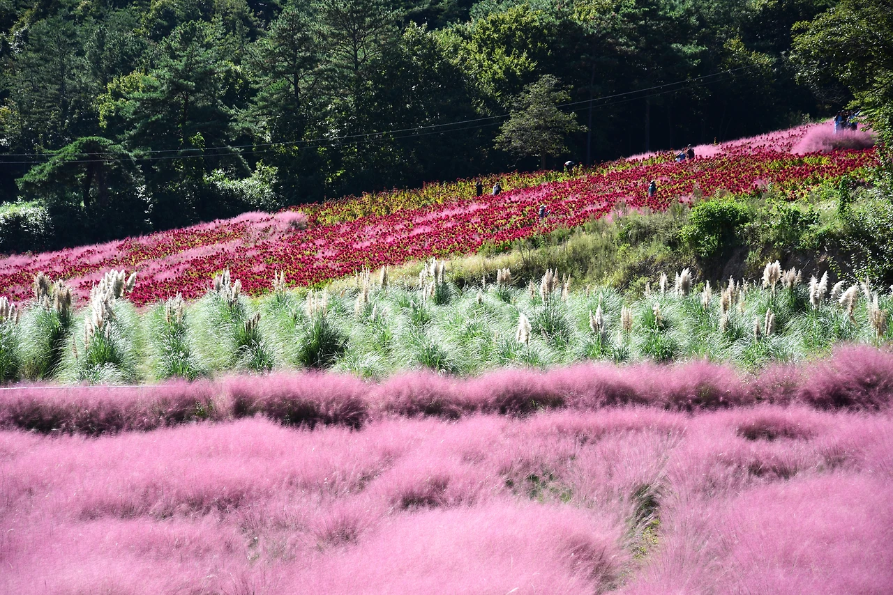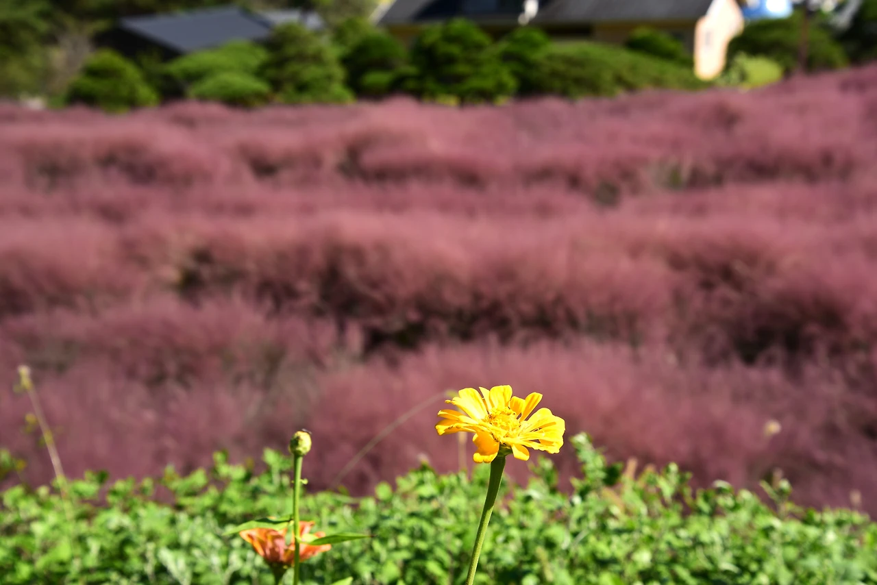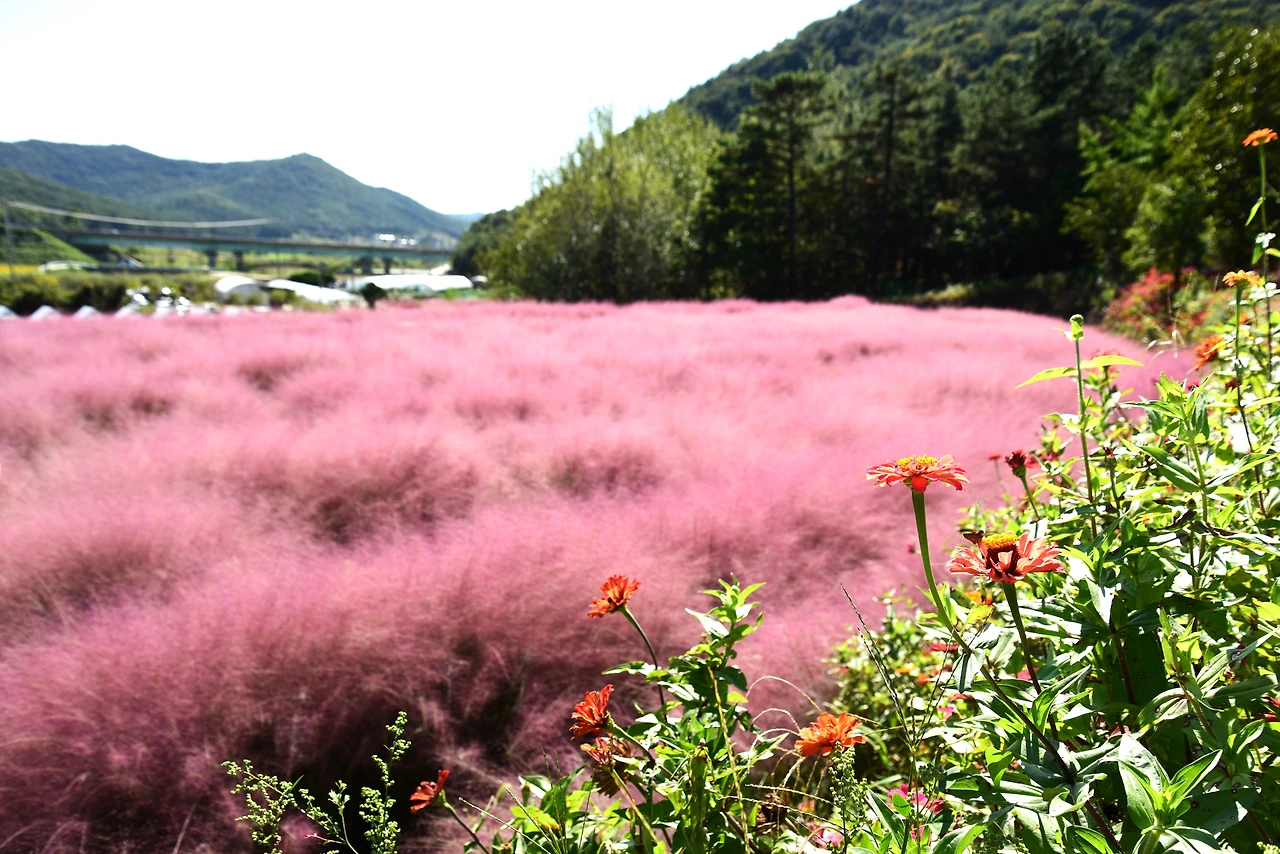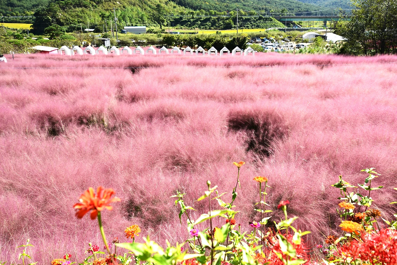 핑크가 주는 환상적인 분위기를 제대로 느꼈다. 꽃구경을 다니다가 핑크뮬리가 식재된 곳을 가끔 만나기는 했지만, 이렇게 넓은 공간에 풍부하게 심어놓은 군락지를 처음 보았기 때문에 그 감동이 컸다.