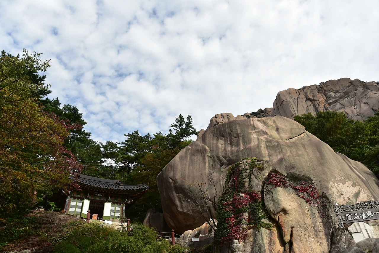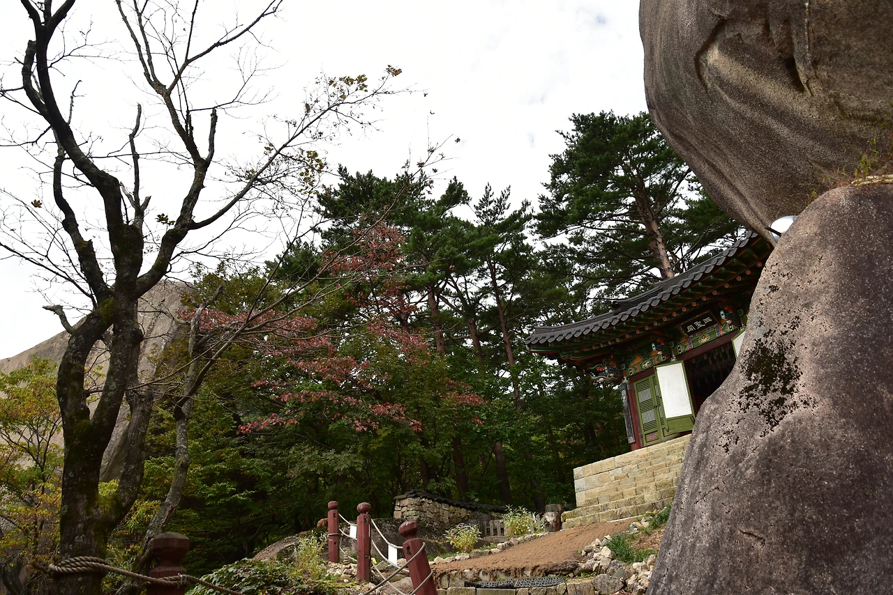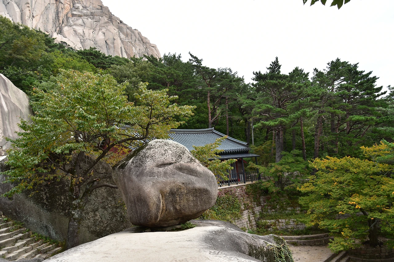 계조암이라고 한다. 자장, 원효, 의상을 비롯한 여러 스님들이 수도를 했다는 석굴이 있는 절이다. 그보다 설악산의 명물인 흔들바위로 유명한 곳이다. 한 사람의 힘으로 움직일 수 있다는데, 실제로 흔들리는 것을 확인할 수는 없었다. 힘줘서 밀면 흔들릴지도 모르겠다.