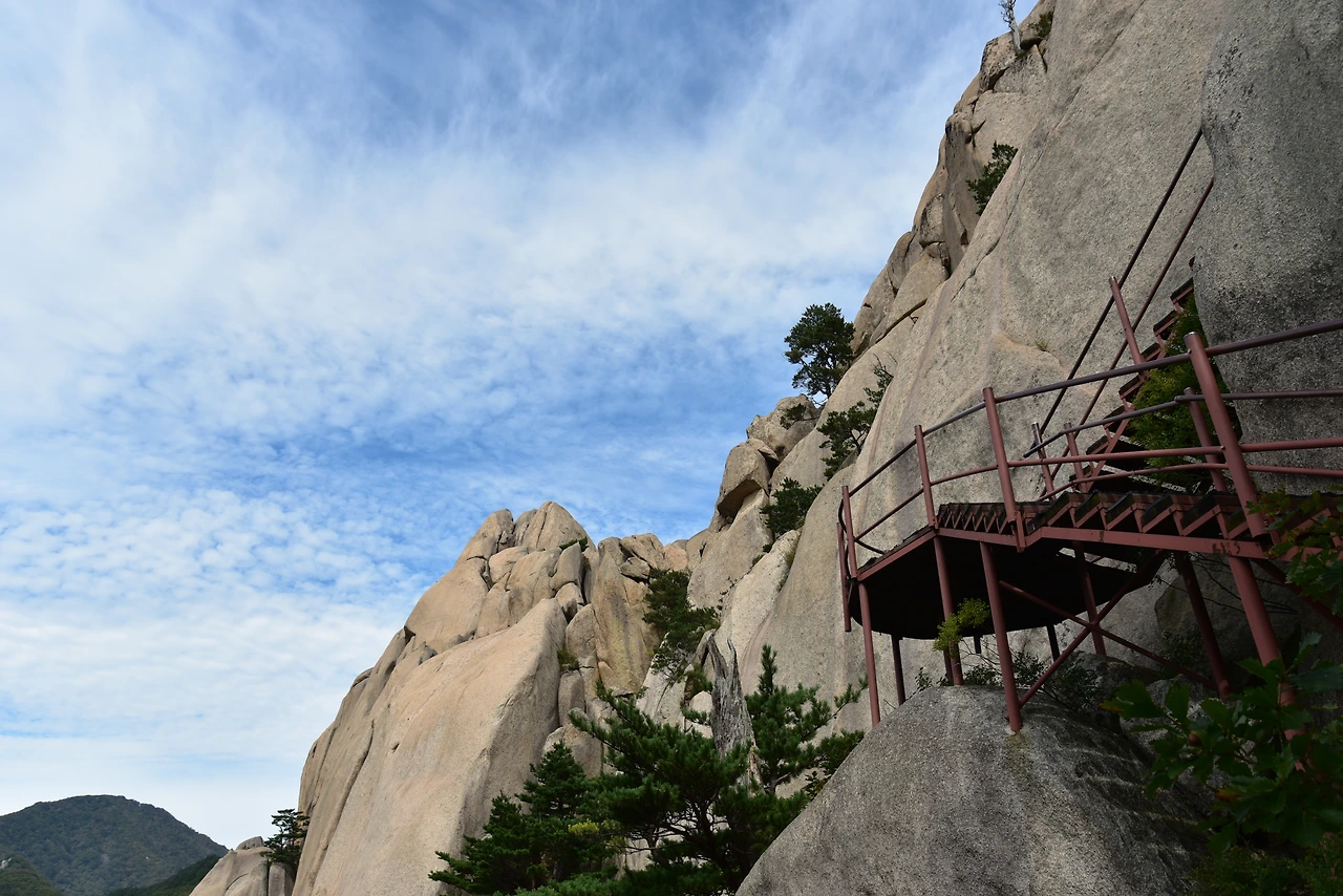 아래에서 보이던 웅장한 울산바위의 곁을, 설치된 계단 덕분에 올라가고 있다. 계단을 만들어준 분들의 노고에 감사하다. 또 그런 계단을 만들 수 있는 기술력이 존경스럽다.