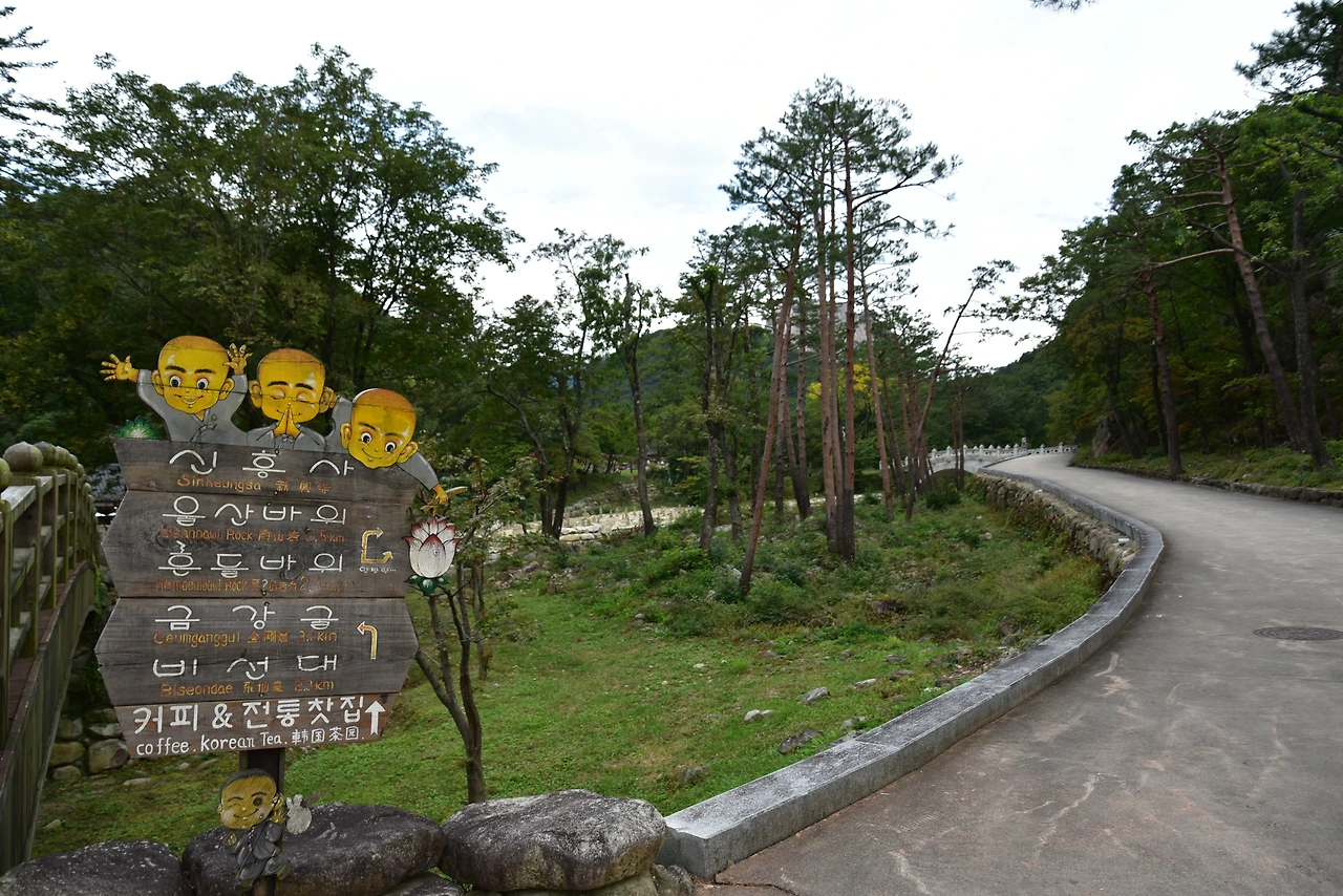 왼쪽으로 가면 비선대로 간다. 울산바위는 보이는 도로를 따라 직진한다.