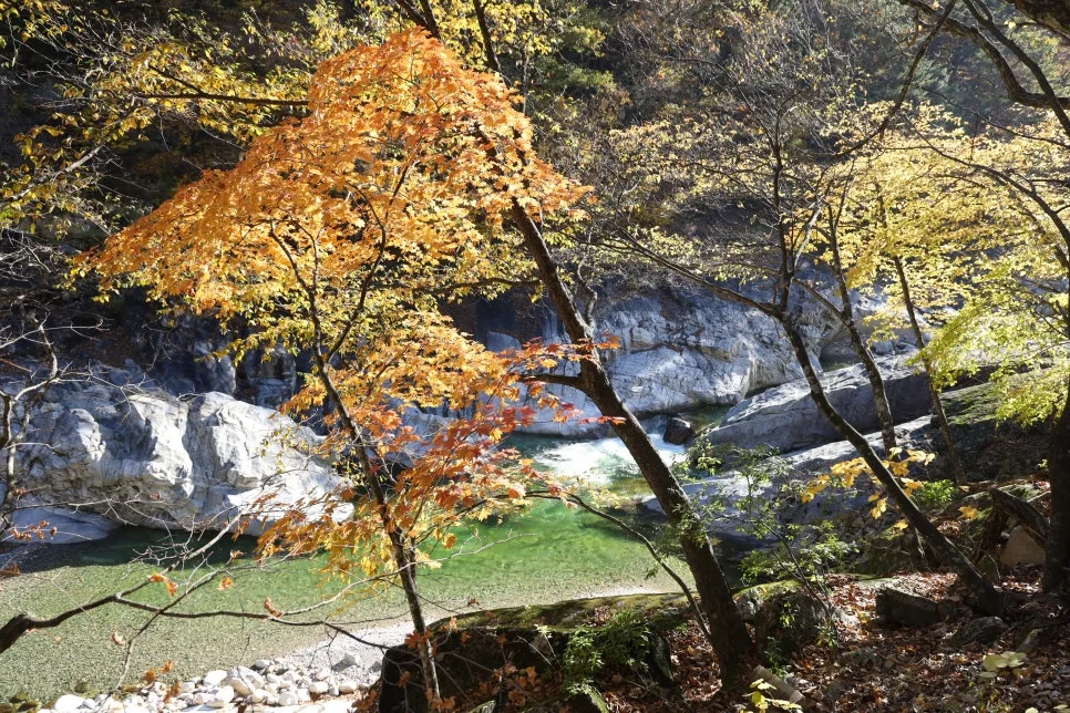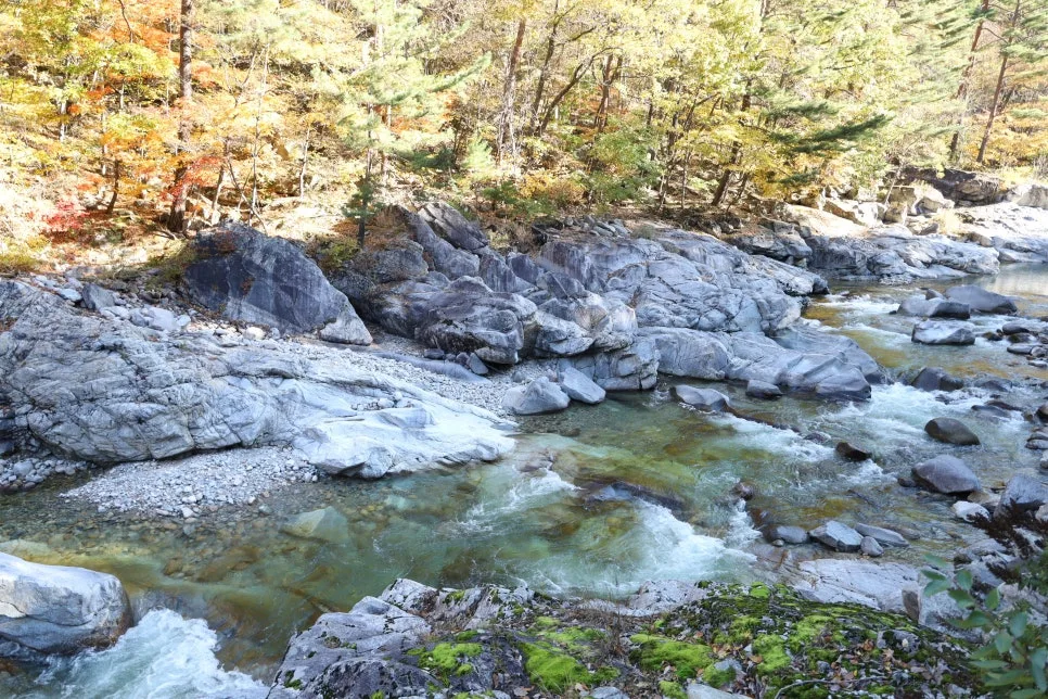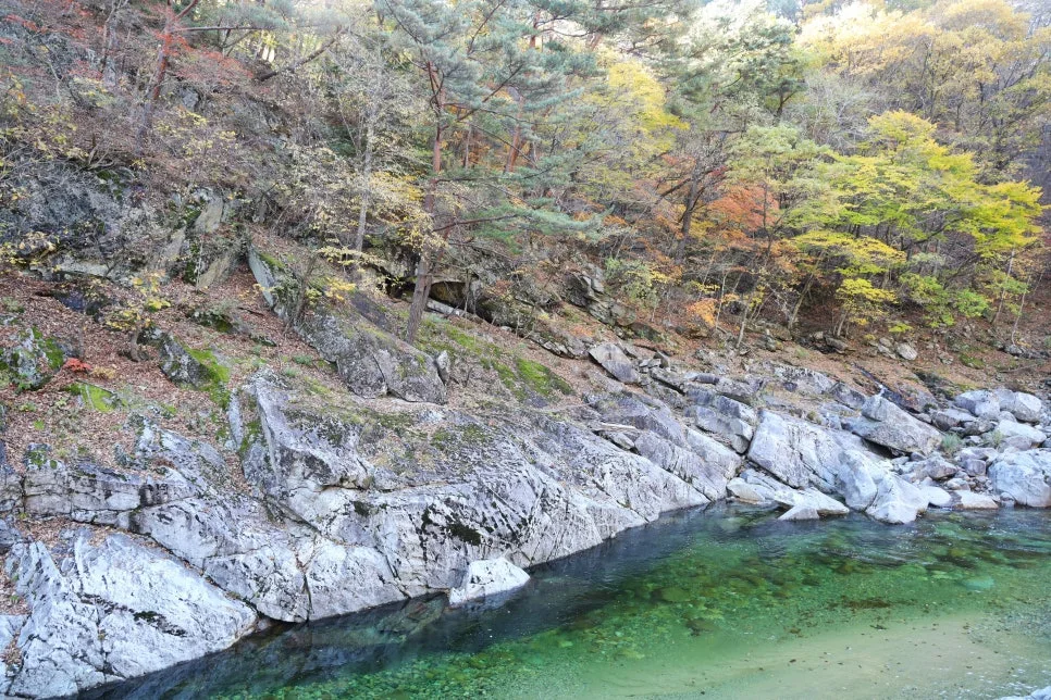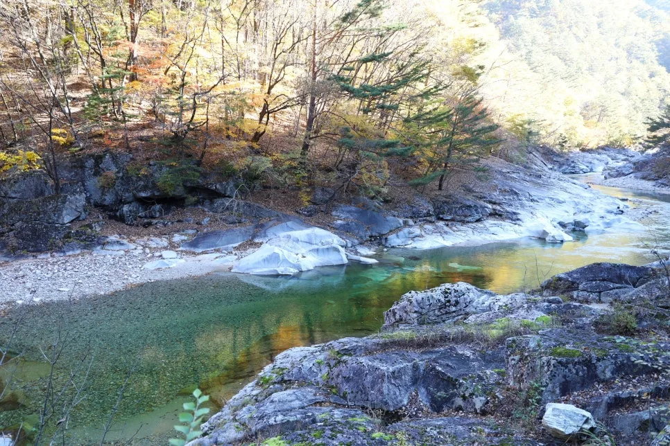 깊이를 느끼게 하는 푸른색이지만 속살까지 투명한 계곡물은 여기가 청정 자연임을 느끼게 합니다.