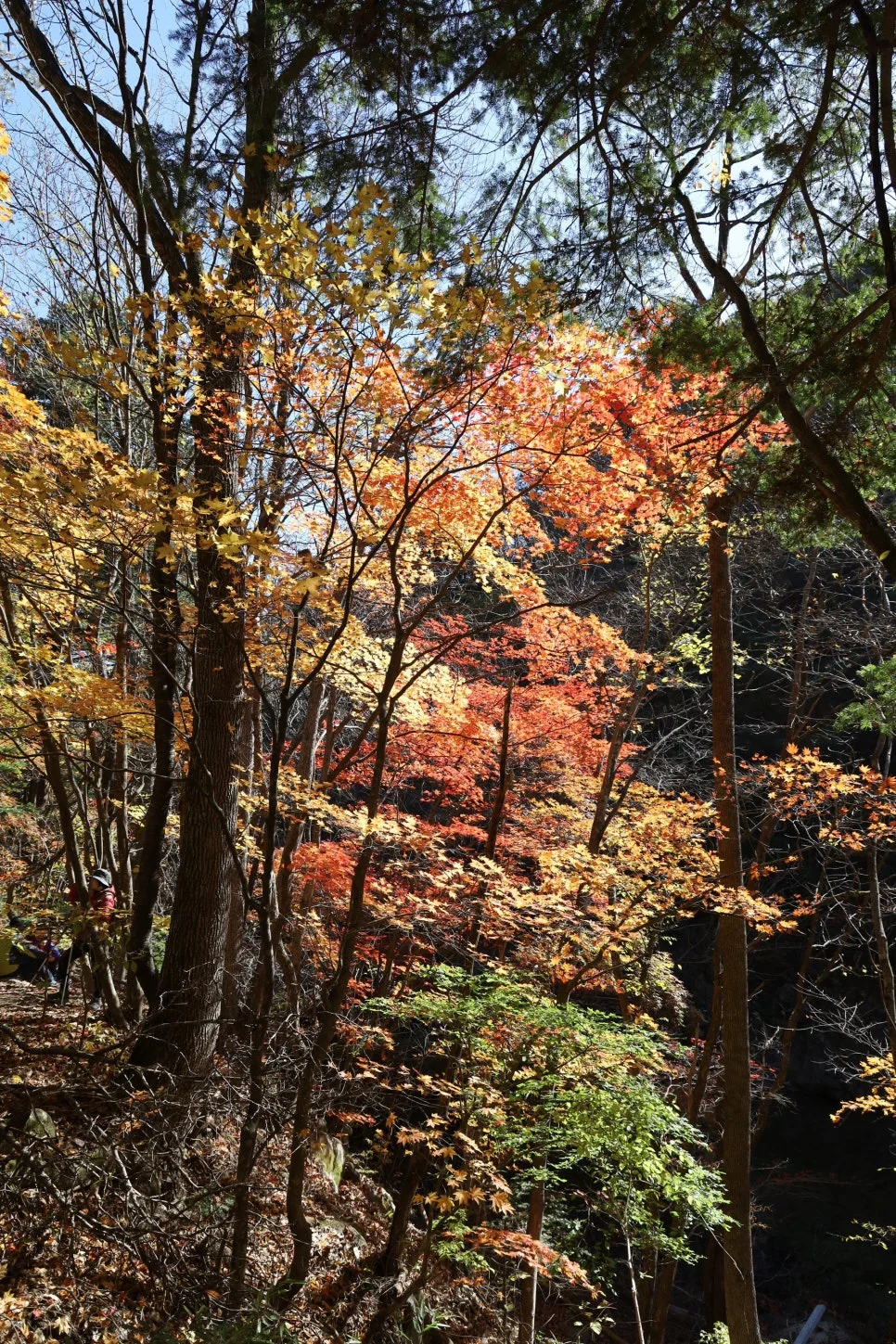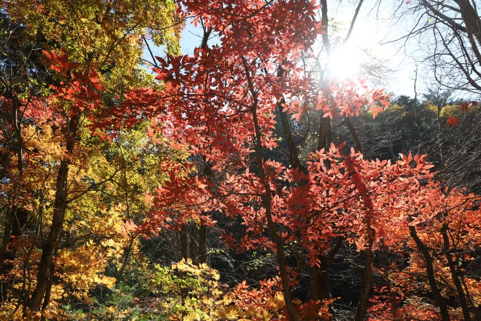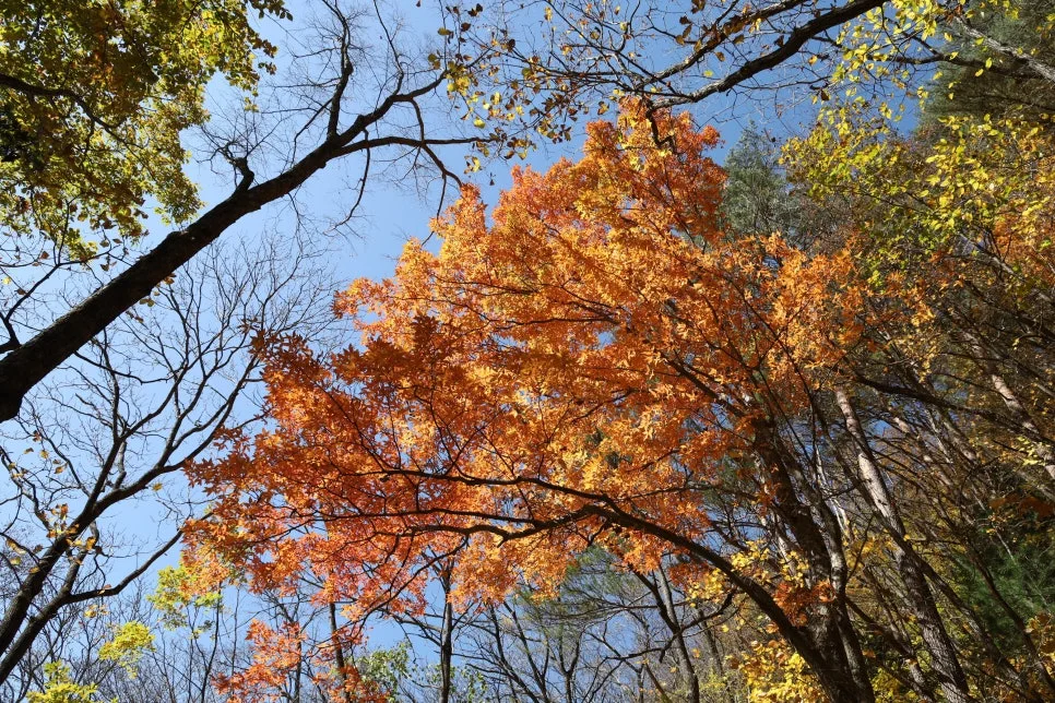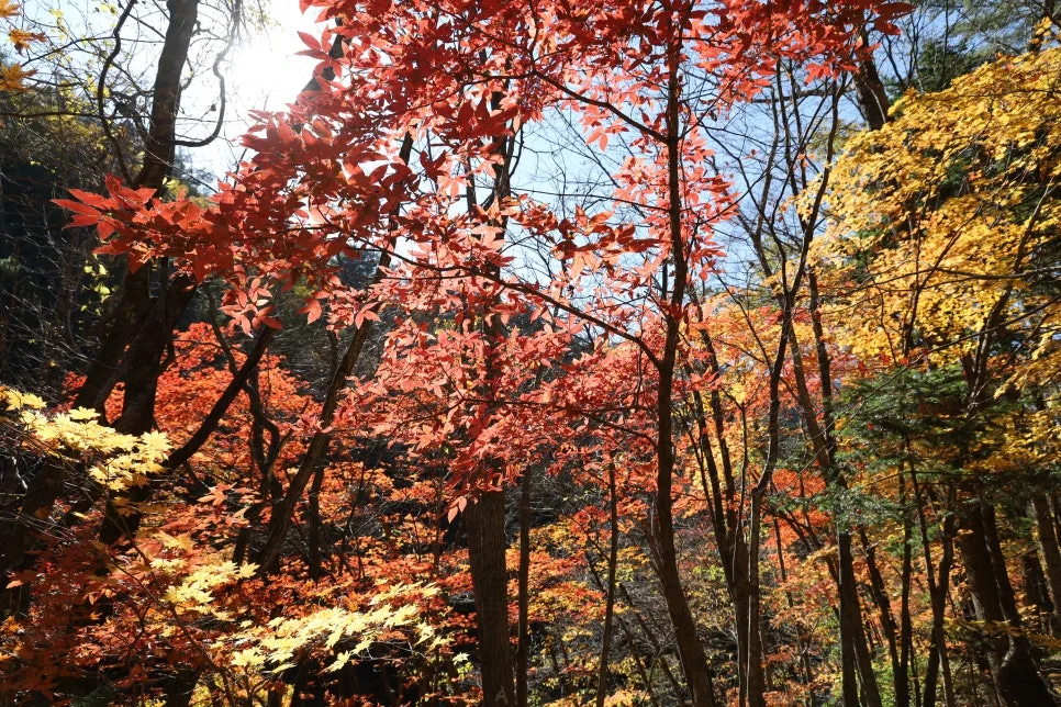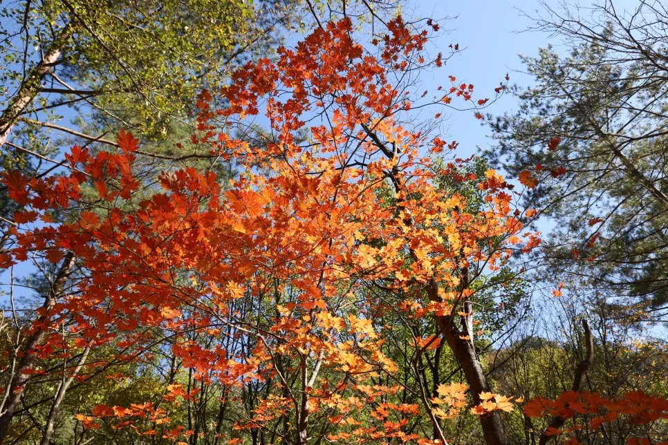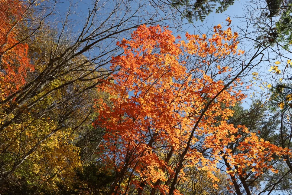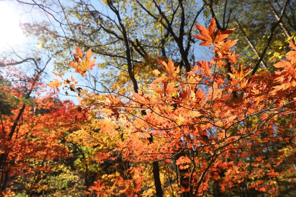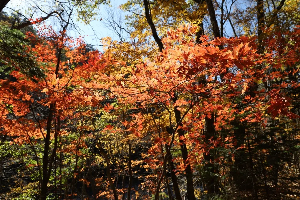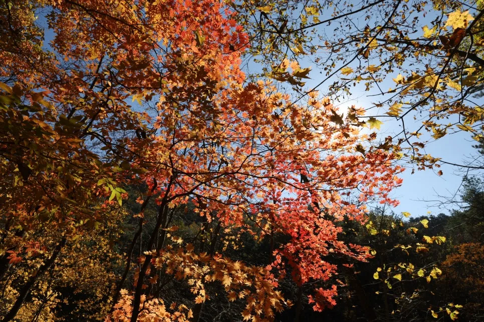 파란 하늘과 빨강, 주홍, 주황, 노란색 단풍~