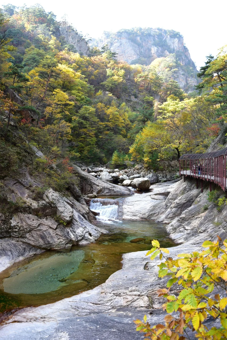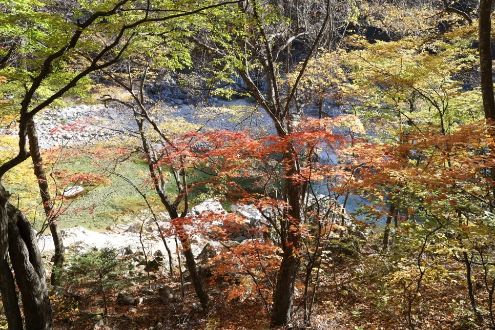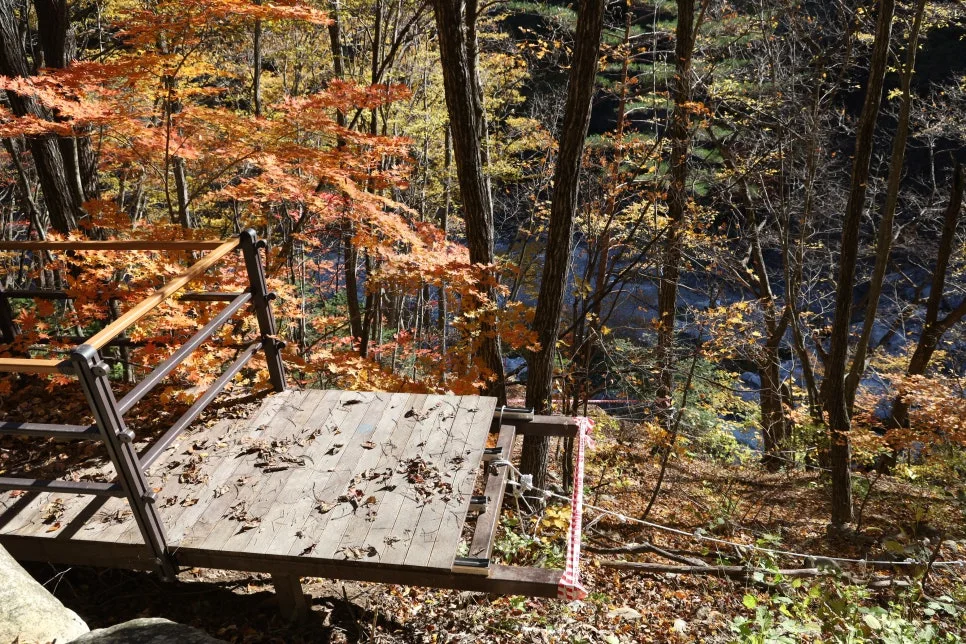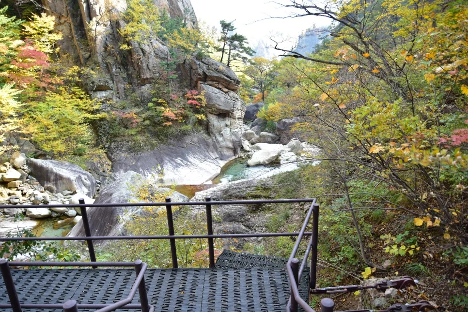 계곡물이 손에 잡힐 듯 가깝지만, 계곡으로 내려가는 길은 허용되지 않습니다.