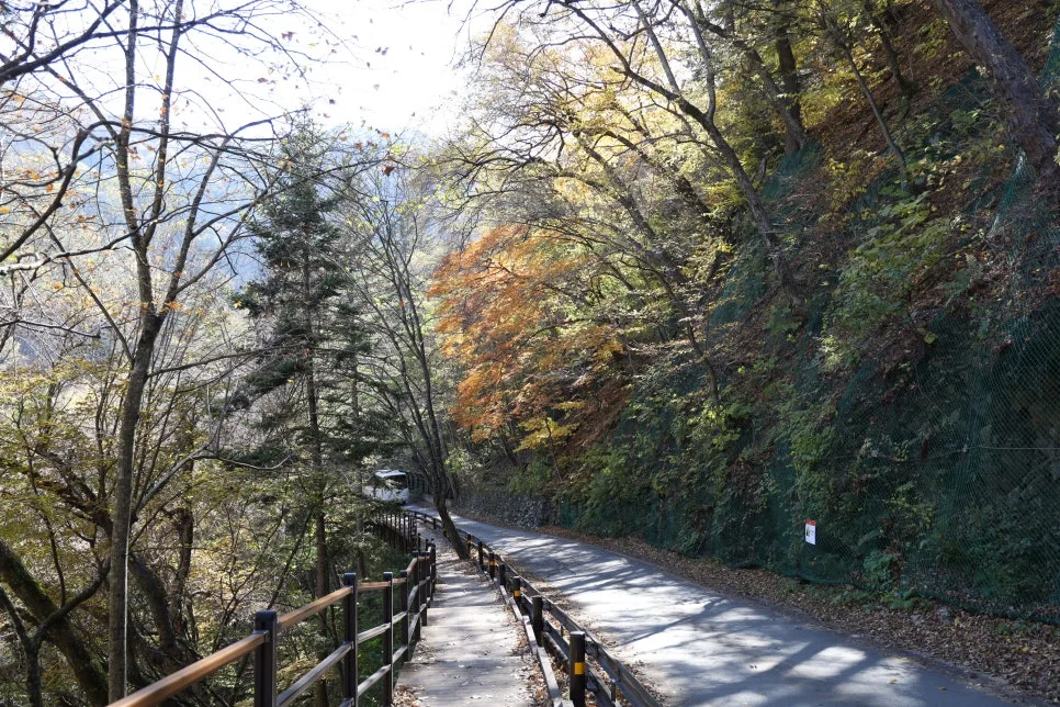 수렴동 트레킹을 할 때는 늘 백담사까지 셔틀버스를 이용한 다음 백담사에서 수렴동 대피소까지 다녀오곤 했는데, 이번에 셔틀버스가 다니는 도로와 나란히 걷기길이 조성되었다고 해서 백담사까지 걸어가기로 했습니다.