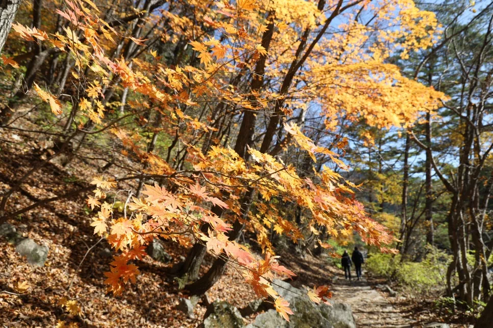 단풍 사잇길로 걸어갑니다.