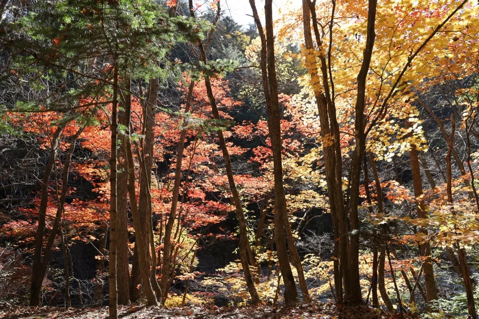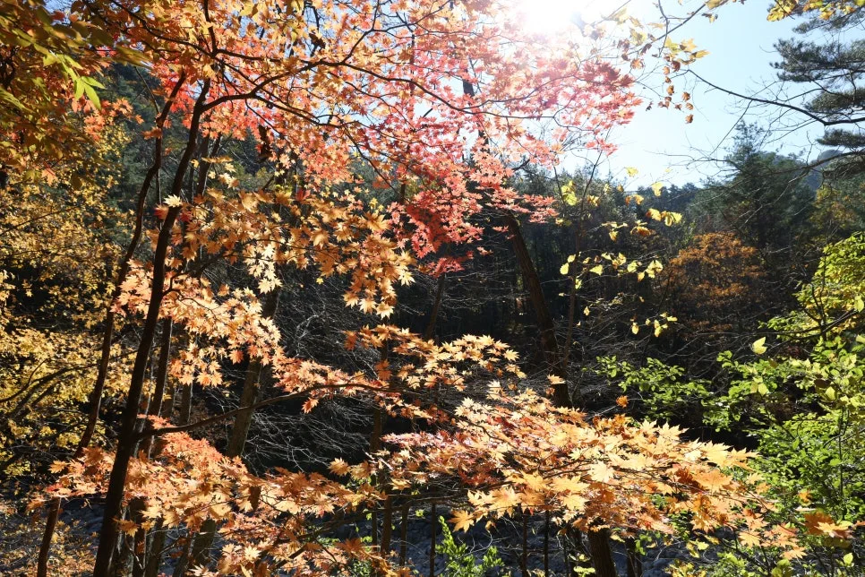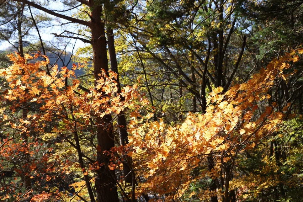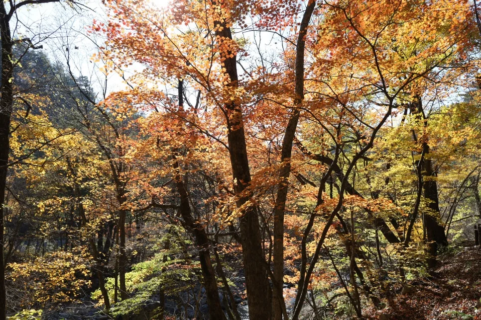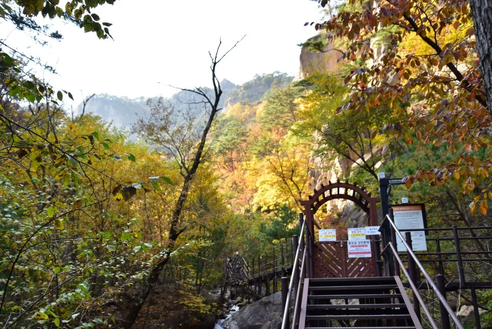 용소폭포 삼거리 통제소 너머로 바라본 풍경이 아쉬웠지만, 주전골의 아름다운 단풍 덕분에 그래도 잘 왔다 소리를 여러 번 했습니다.