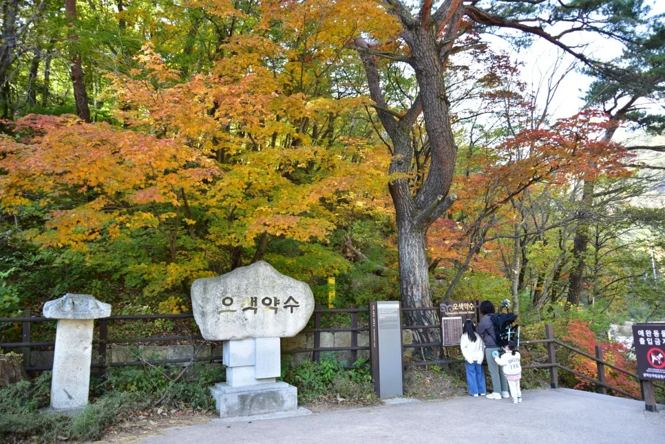 도시락이 없으니 식당에서 점심을 해결하고, 단풍이 예쁜 오색약수터를 지나갑니다.