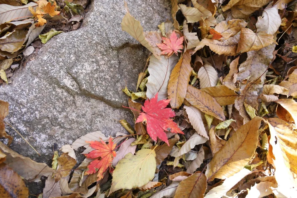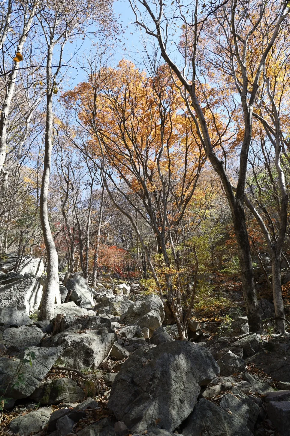 내리막길이 생각보다 많이 어렵지는 않았습니다. 하지만 낙엽이 많이 떨어져서 발 디딜 데를 찾기 쉽지가 않아 긴장한 채로 내려오느라 몸에 힘이 잔뜩 들어갔지요.