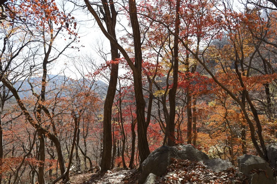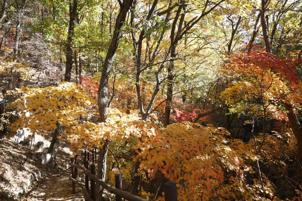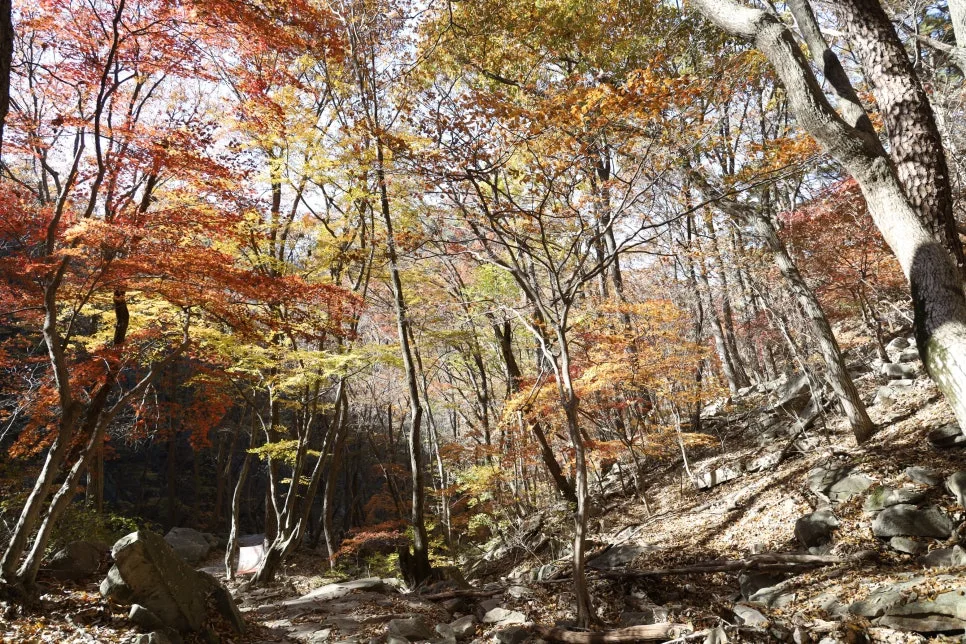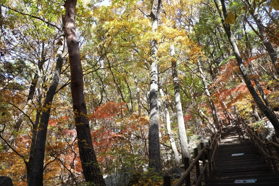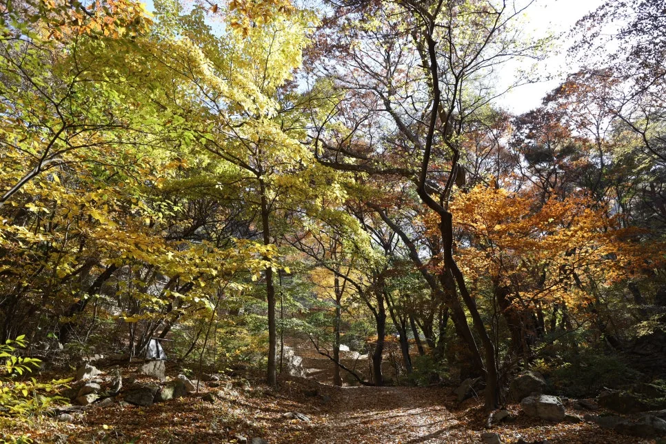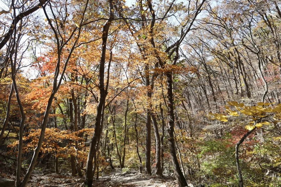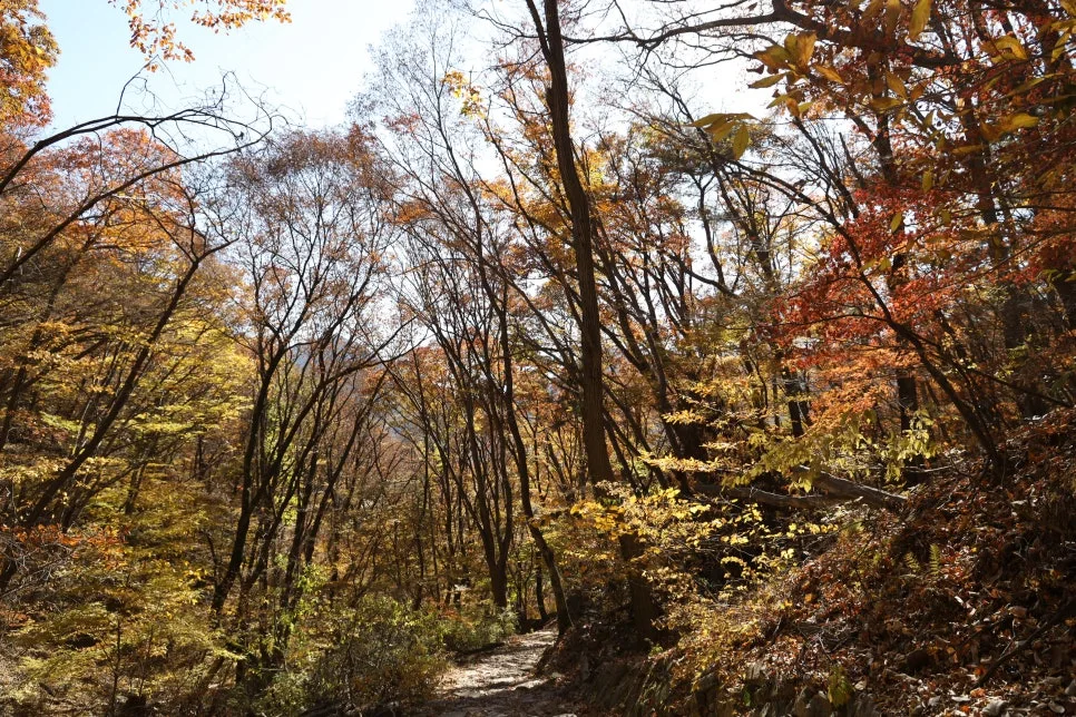 산을 내려갈수록 단풍 빛깔이 고와집니다. 그때 당일 여행으로 끝나지 않고 다음날 산행을 했더라면 더 멋진 풍경과 만날 수 있었을 텐데요. 아쉬운 마음 가득입니다.