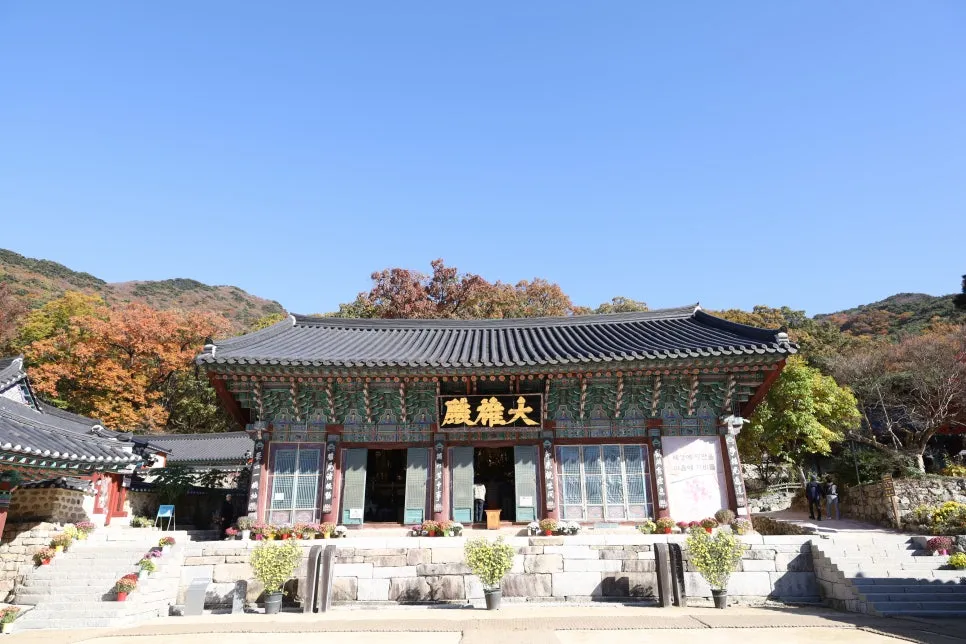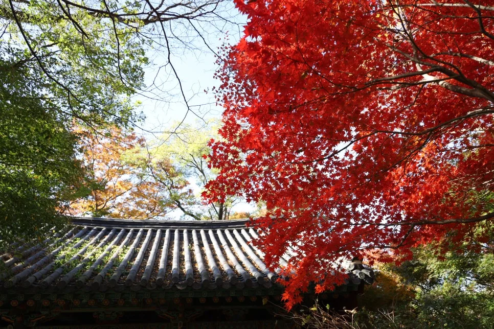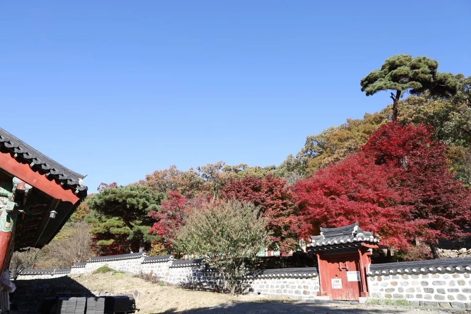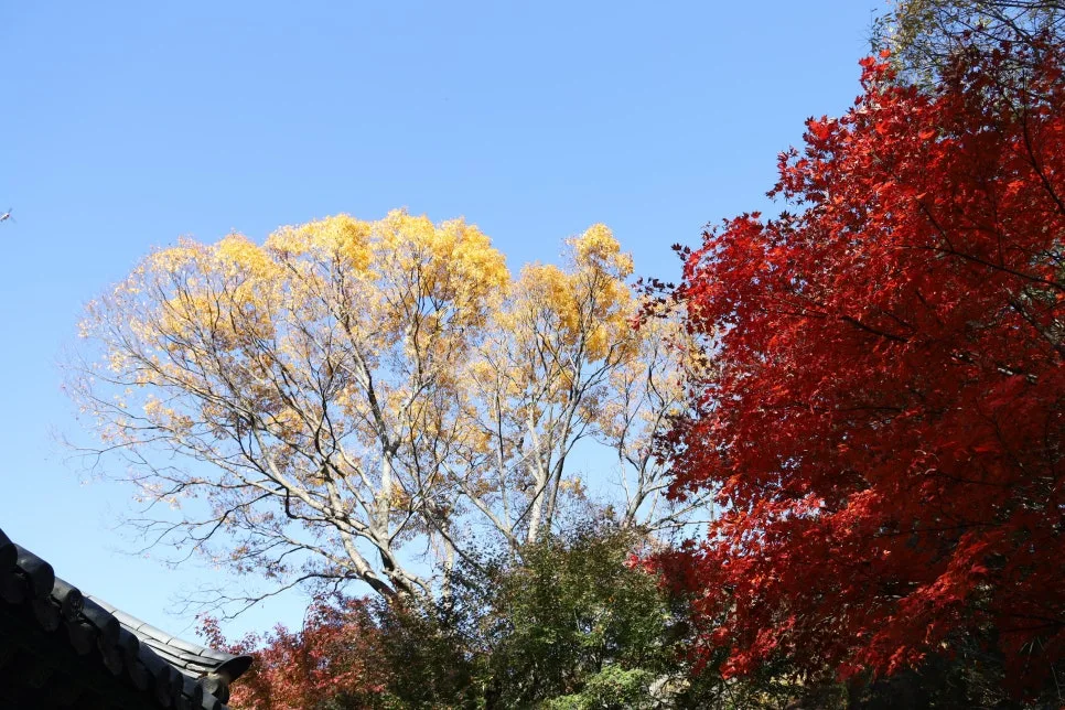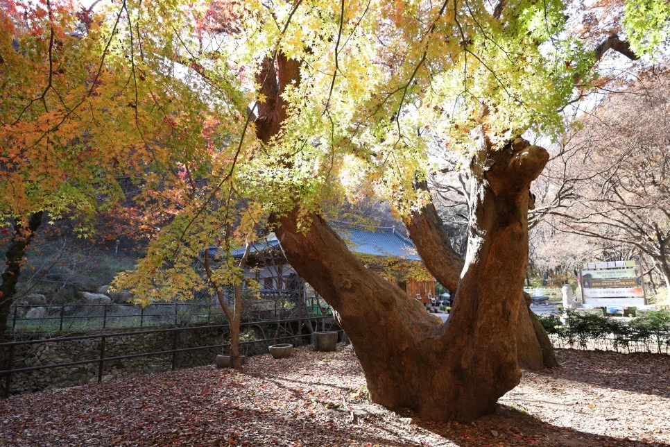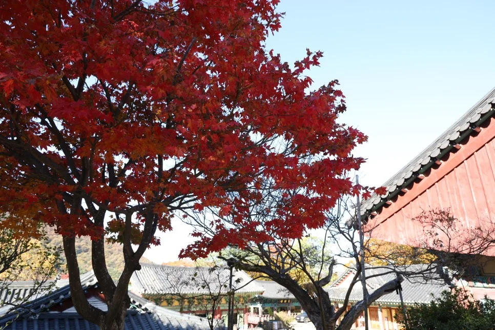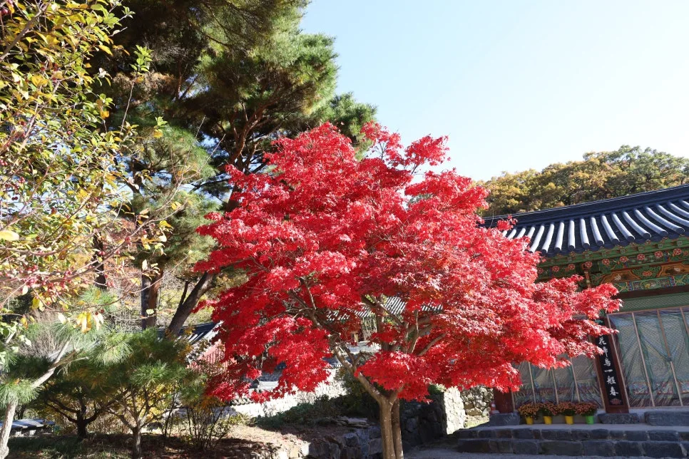 동학사에는 예전부터 유명했을 멋진 단풍나무가 우리를 기다리고 있었어요. 동학사의 가을 맛을 보여주려는 듯.