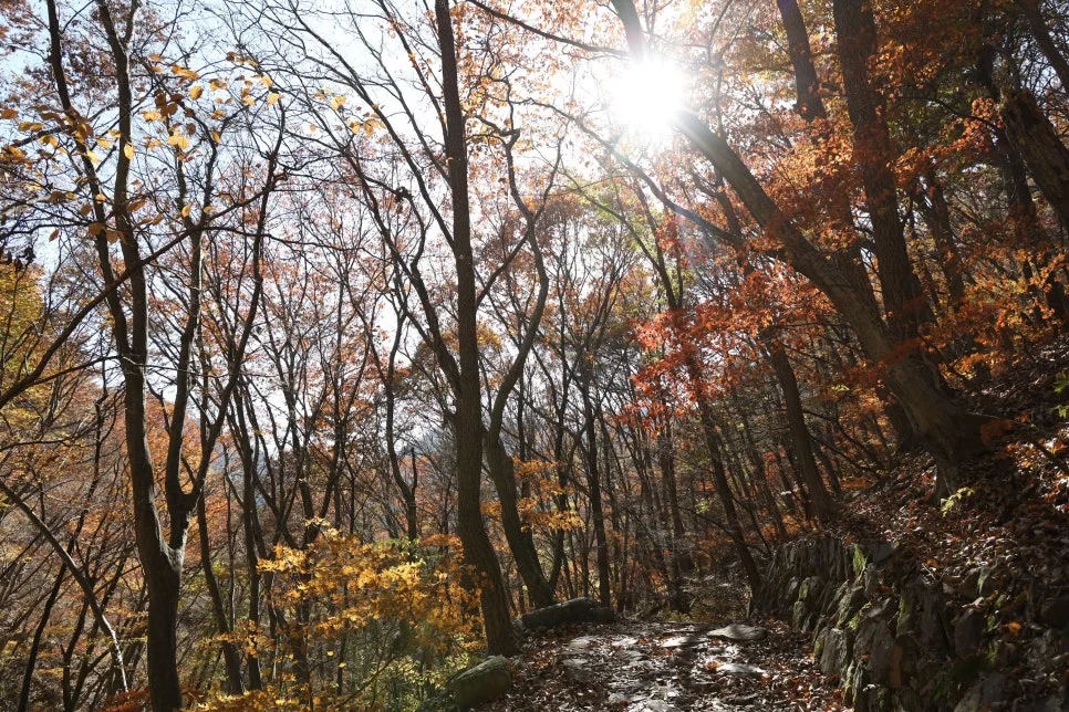낙엽이 등산로를 뒤덮은 11월의 산길.