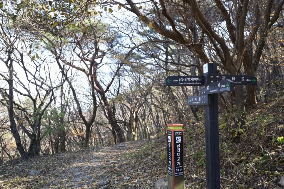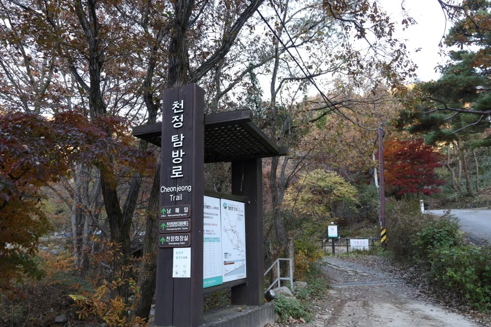 갑사 코스에서 금잔디고개까지 갔다가 내려올 때 돌계단 길이 힘들어했더니 천정탐방로가 쉬운 편이라고 그쪽으로 올라가기로 했어요.